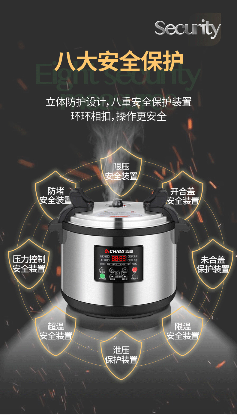 Chigo Commercial Electric Pressure Cooker 8L-65L Large Capacity Household Electric Rice Cooker Electric Pressure Cooker Hotel Canteen Hotel