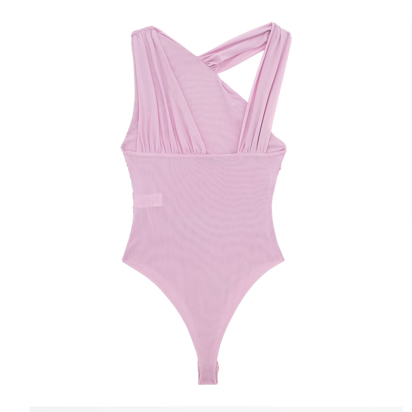 ZA women's clothing wholesale French European and American style fashion casual solid color silk mesh asymmetric pleated jumpsuit 5039337