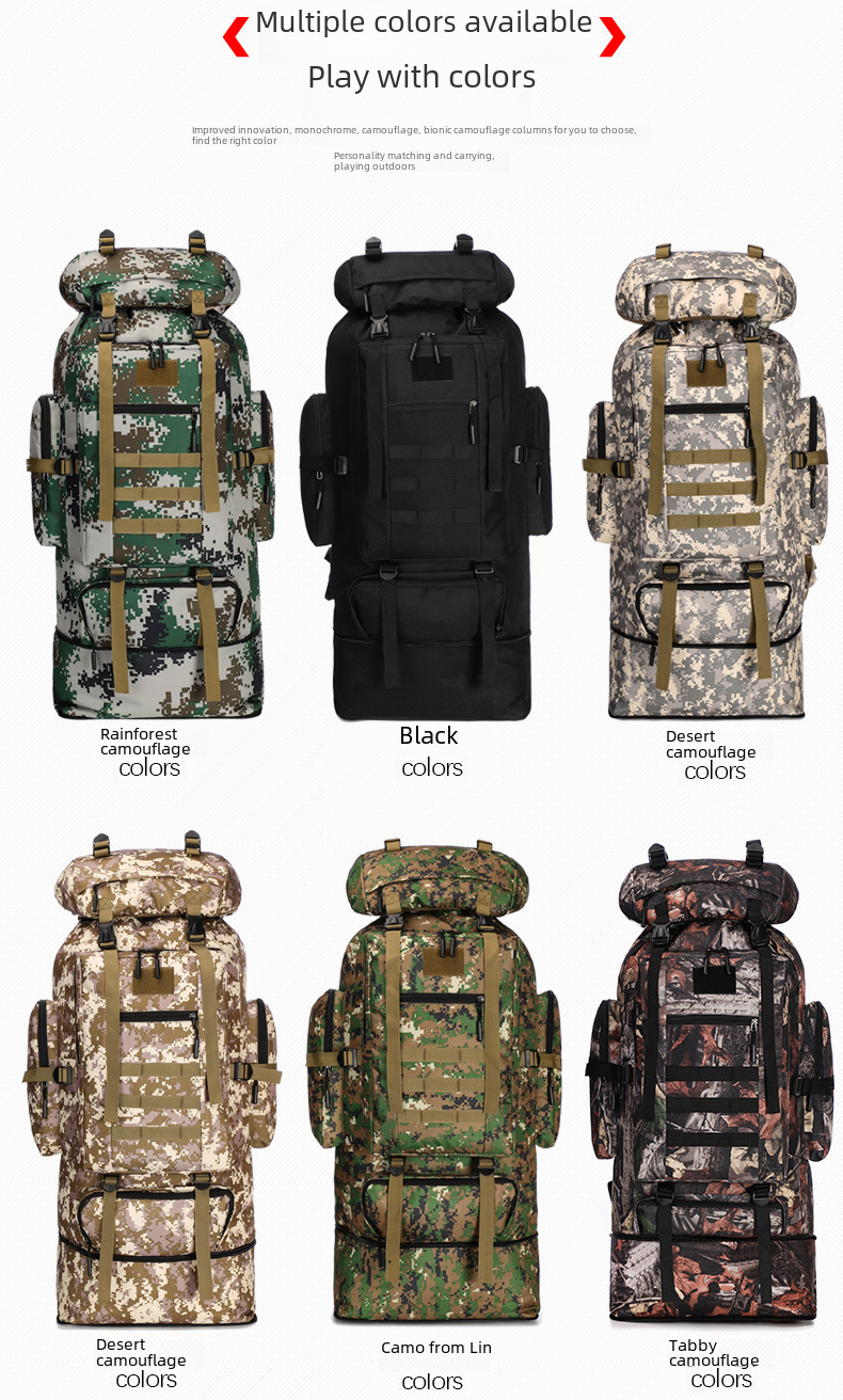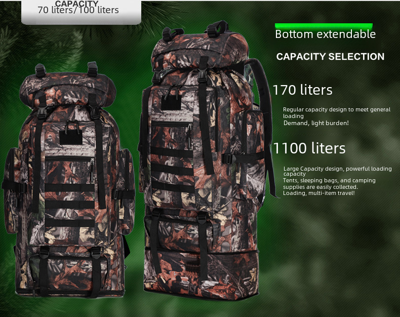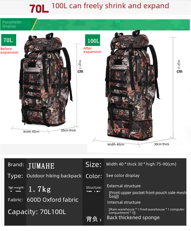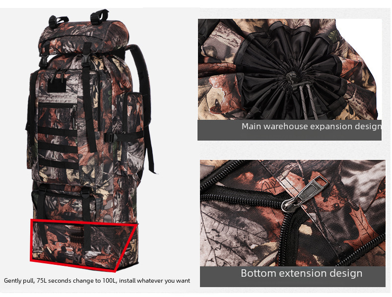 100L Large Capacity Outdoor Sports Mountaineering Bag Extensible Heightened Travel Backpack Men's and Women's Camping Backpack