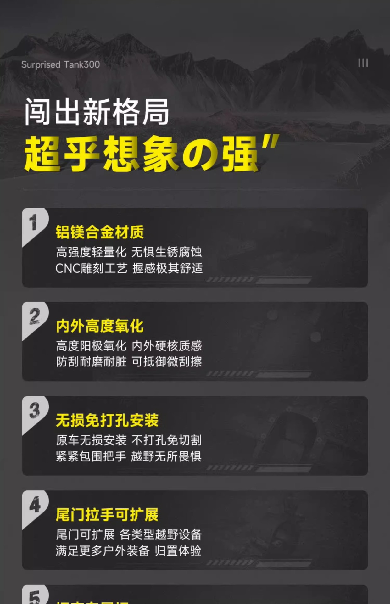 Tank 300 door handle modified car door handle armed series decorative tail door handle aluminum alloy appearance accessories