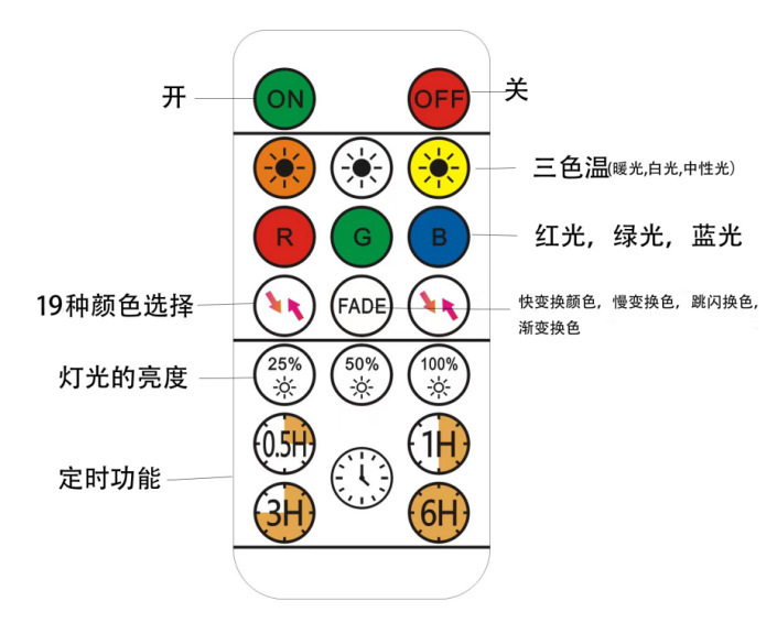 RGB遥控款带定时功能( 0.5H, 1H,3H,6H)