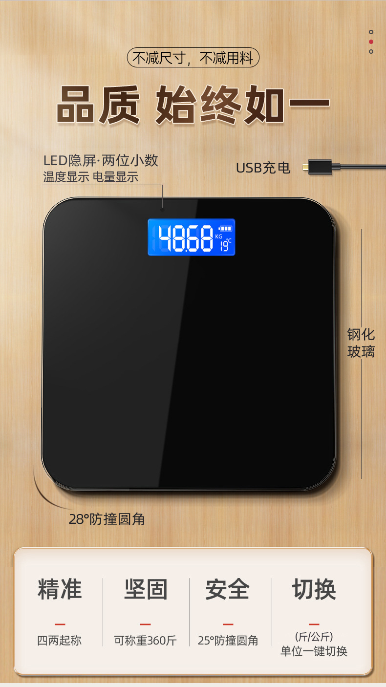 Weighing scale household electronic scale small durable precision charging electronic scale measuring human body high precision body fat weighing scale