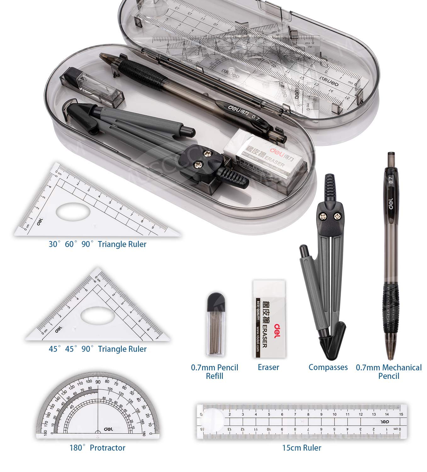 Material: plastic.Color: clear.Size: 175 * 75 * 28mm.Package:1* drawing compass ruler;