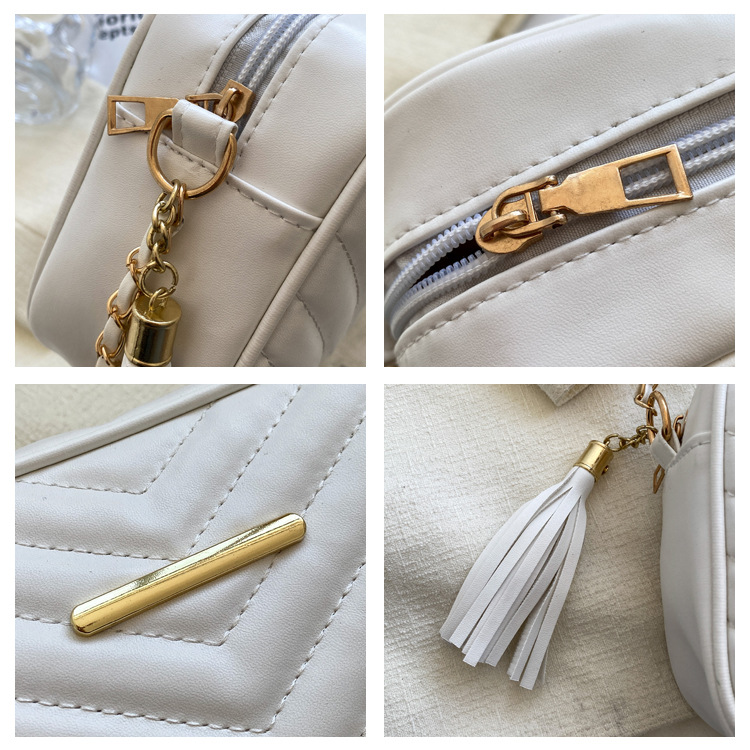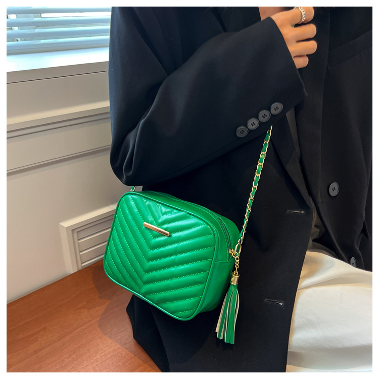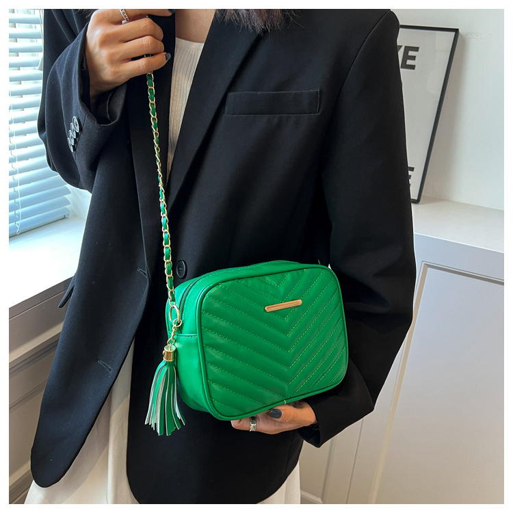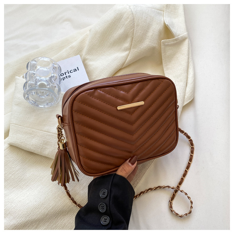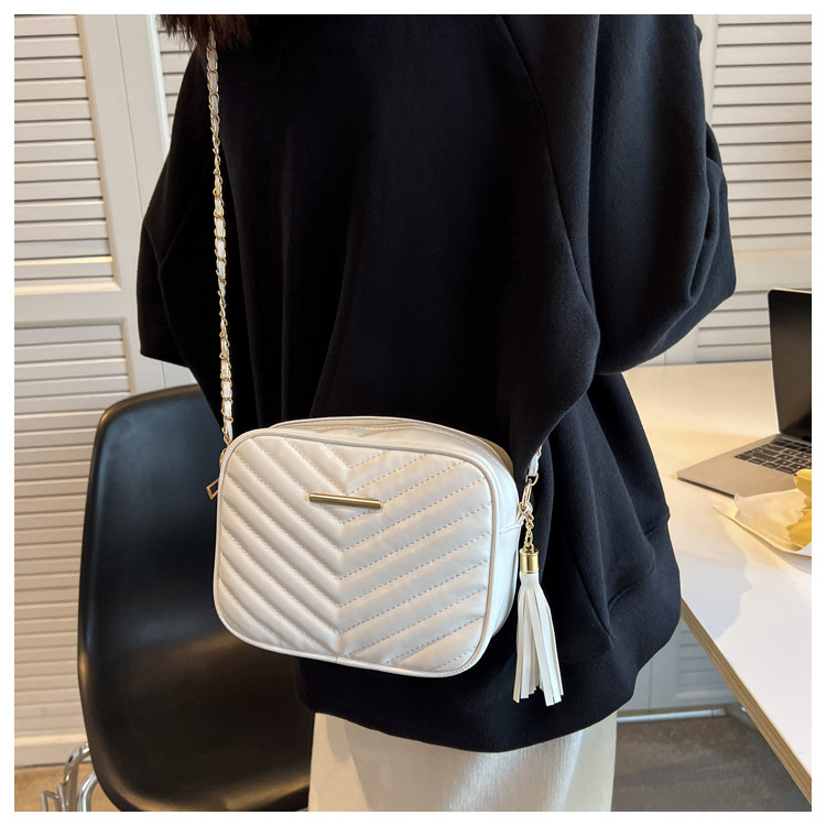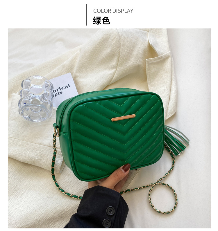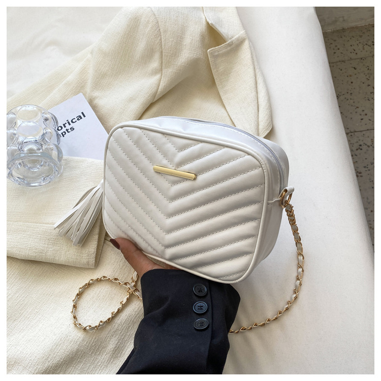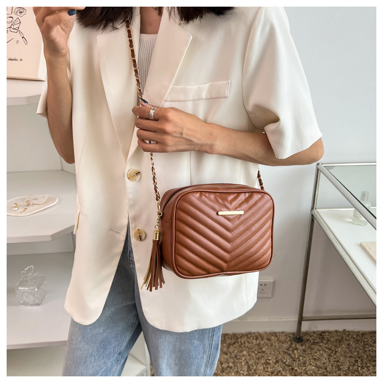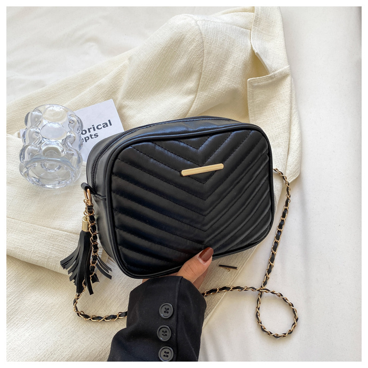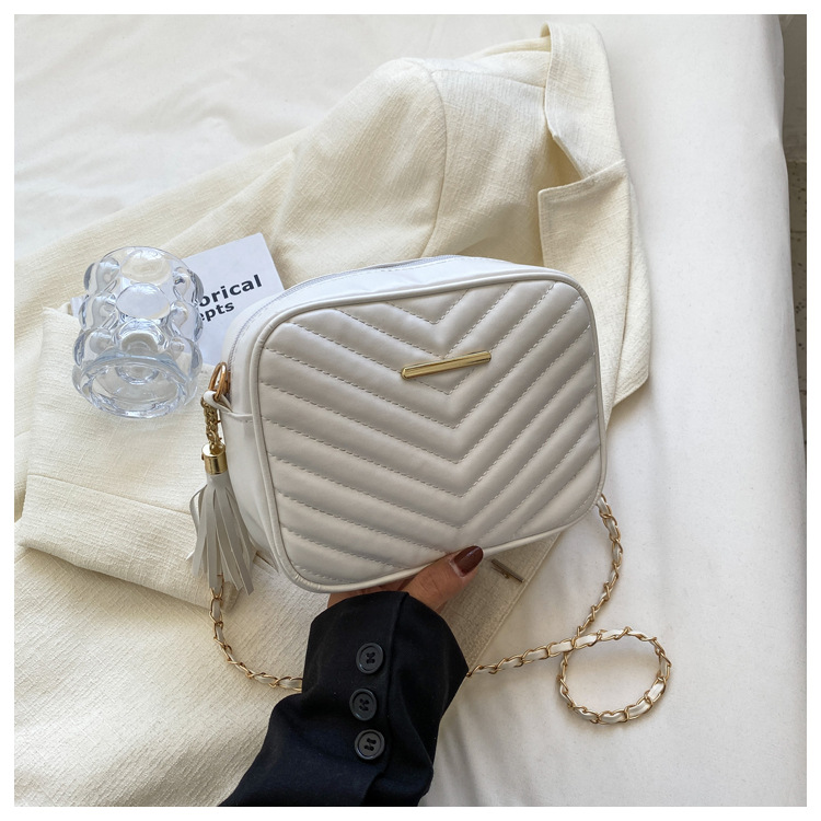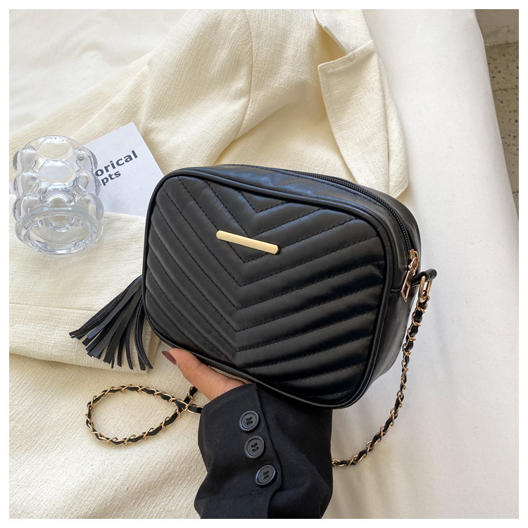 4-6345 Ladies Bag Women's New Fashion Chanelstyle Embroidery Thread Tassel Chain Small Square Bag Women's Shoulder Cross-Body Bag