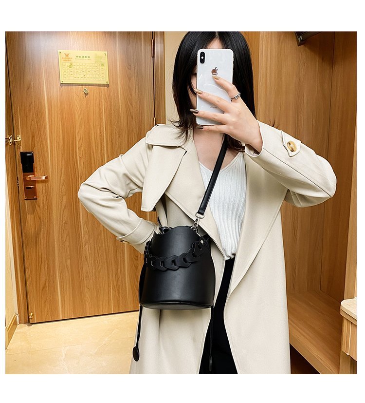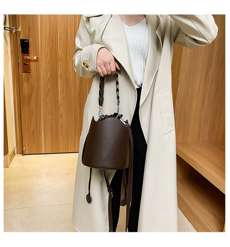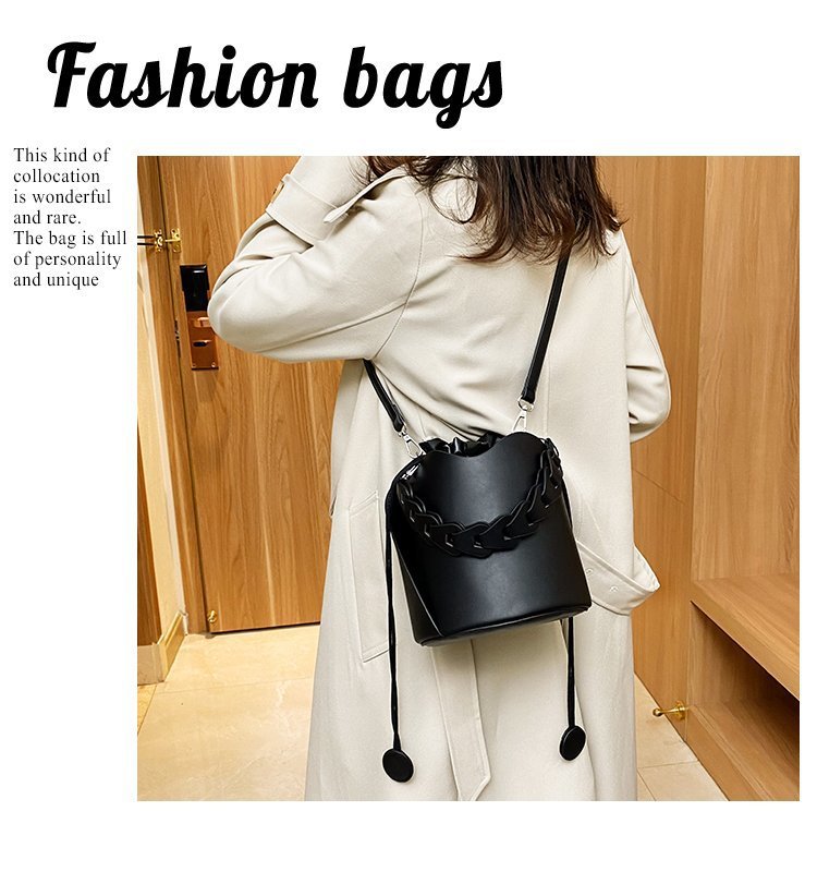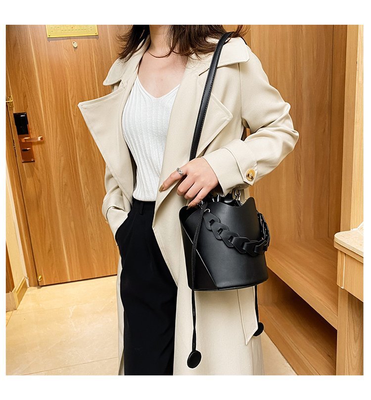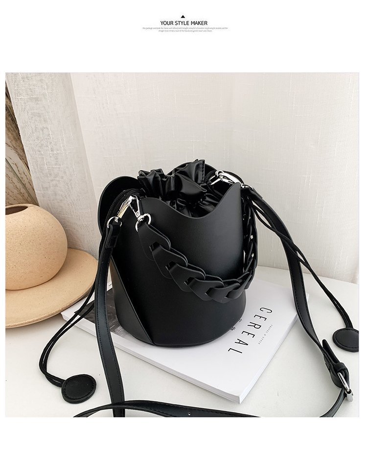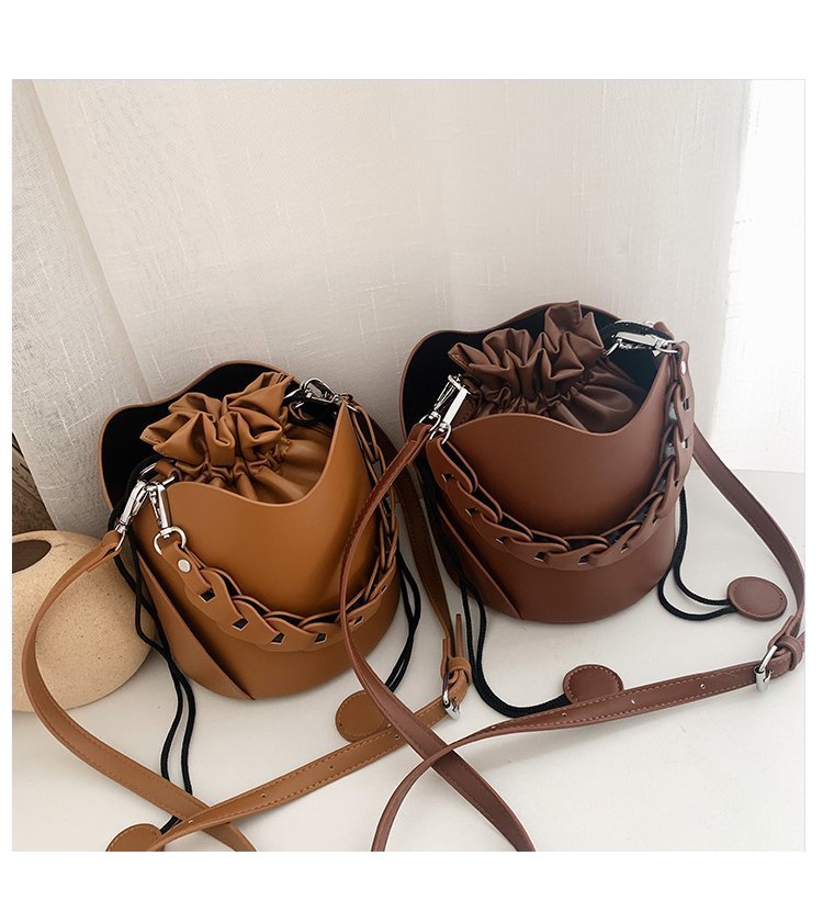 JP&A-1581 Pu Leather Lady Bucket Handbag Weave Handle Bucket Portable One Shoulder Messenger Bag Casual Women Totes Bag