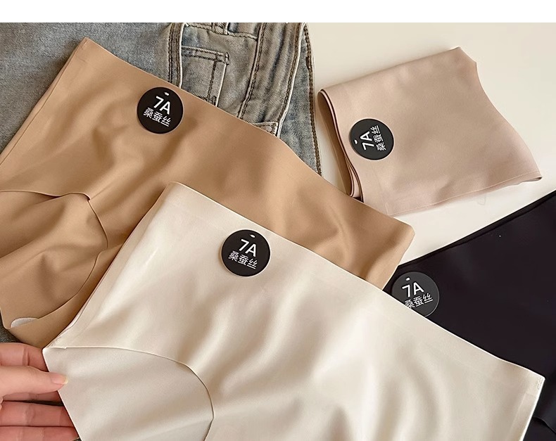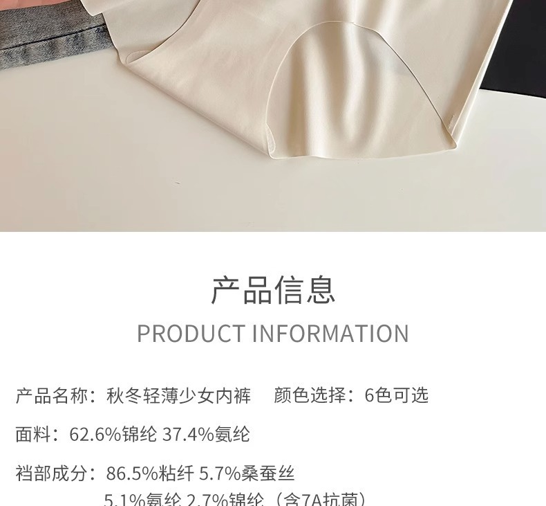 Autumn and Winter simple 7A mulberry silk antibacterial seamless mid-waist women's underwear lightweight nude skin-sticking breathable briefs