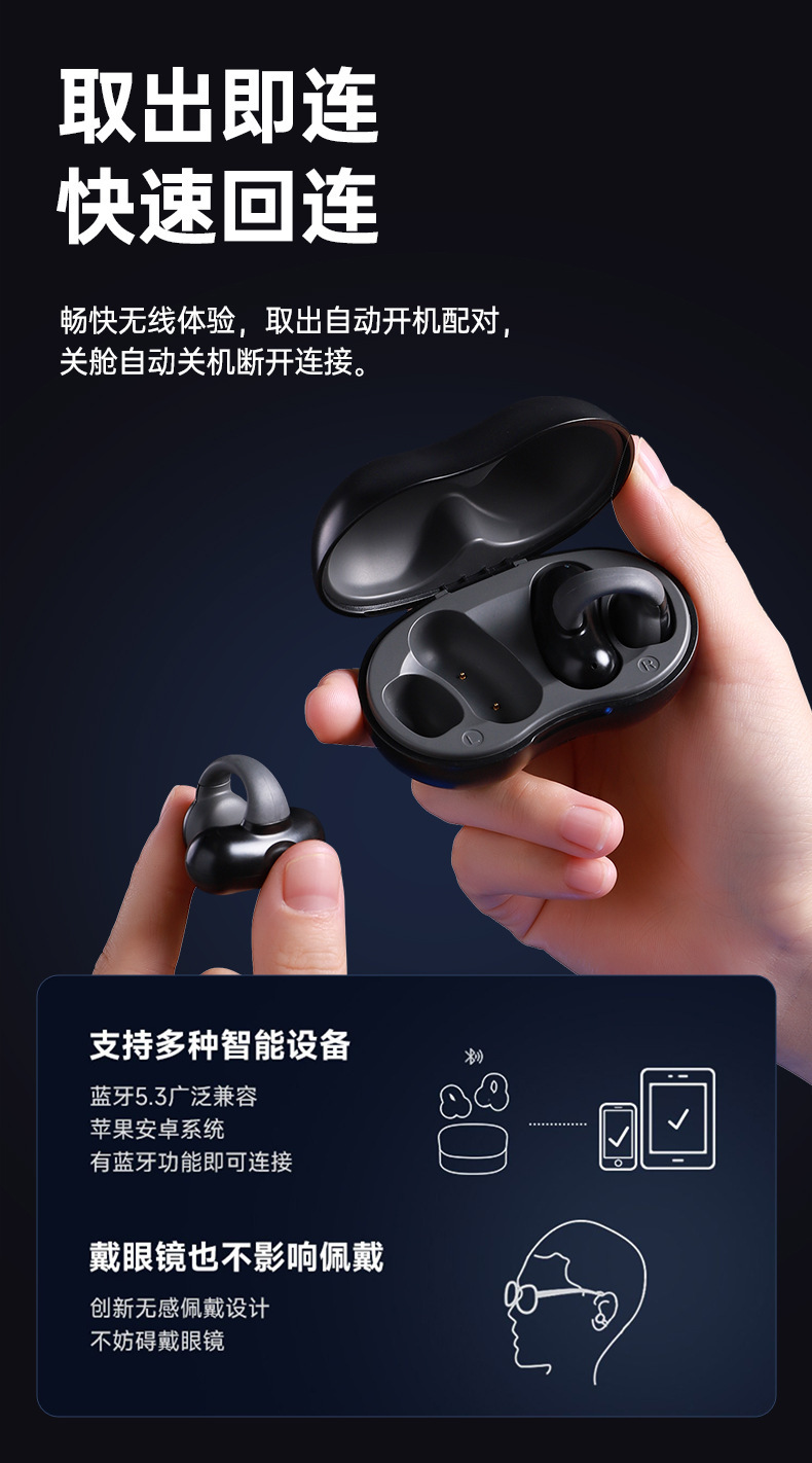 niye Nai also F6 Bluetooth headset bone conduction does not enter the headset wireless clip-on motion long battery life comfort