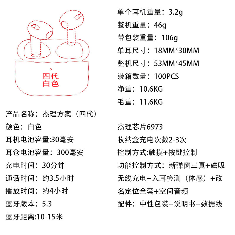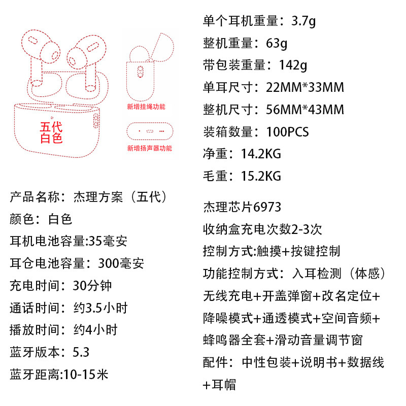 Huaqiang North second, third, fourth and fifth generation Bluetooth headset Jerry 6973 noise reduction wireless sports TWS cross-border Loda 1562F