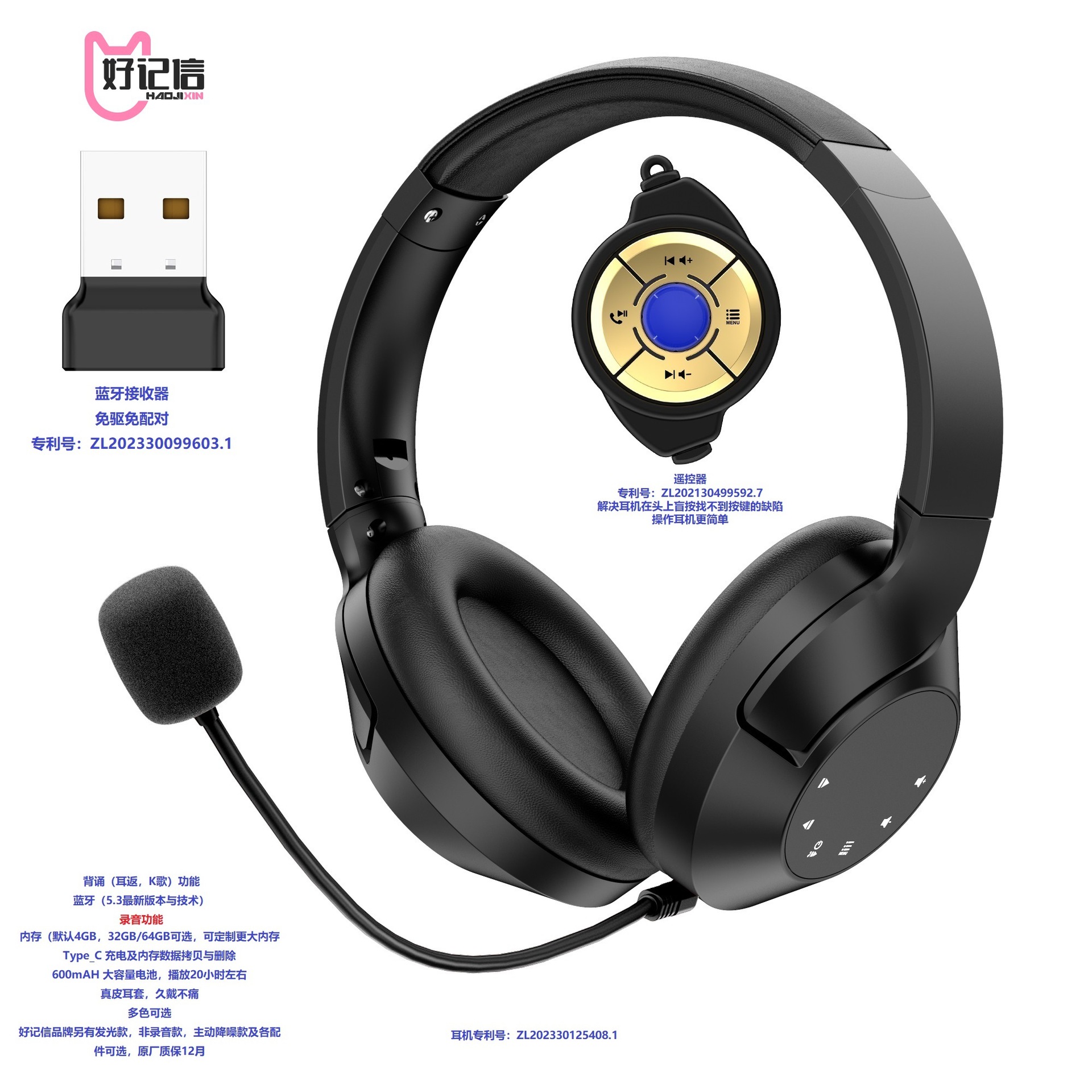 Good letter remote control endorsement headset recitation Lang read Bluetooth receiver adapter touch sliding active noise reduction ear