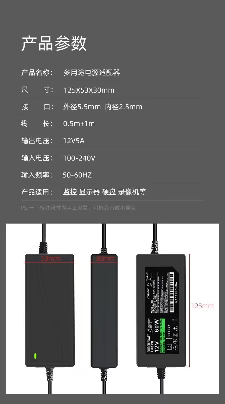 Original 12V5A power adapter LED LCD LCD monitor TV power adapter 12V 5A