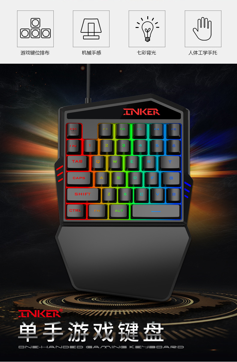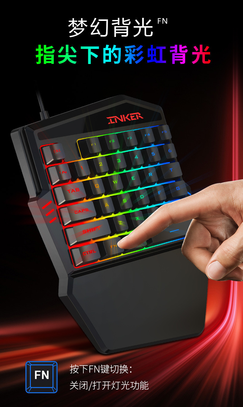 Cross-Border single-hand keyboard colorful mechanical 35 keys with mobile phone throne chicken eating game handle mobile game chicken eating artifact