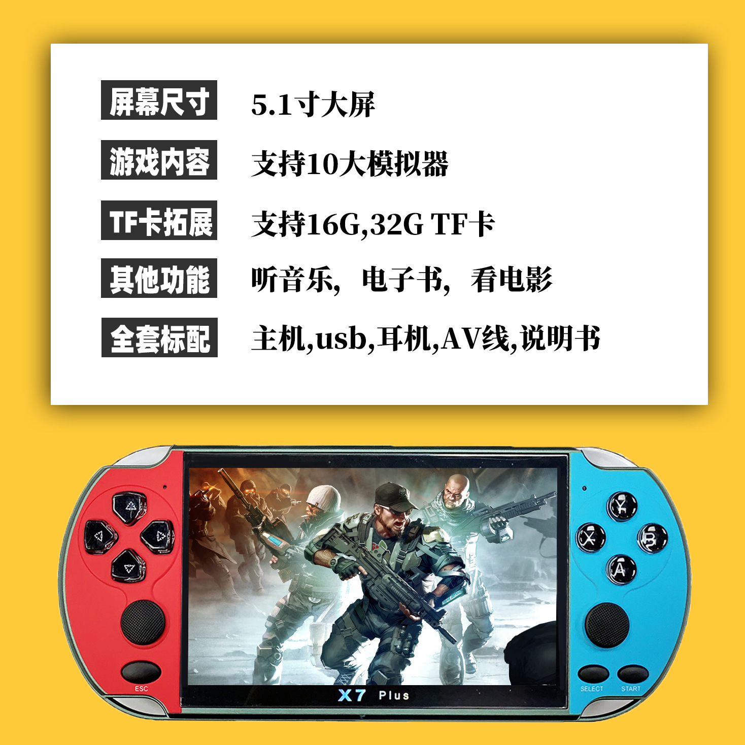 AMPOWN X7PLUS cross-border mini open source game console ps2 GBA arcade 5.1 inch large screen PSP game console