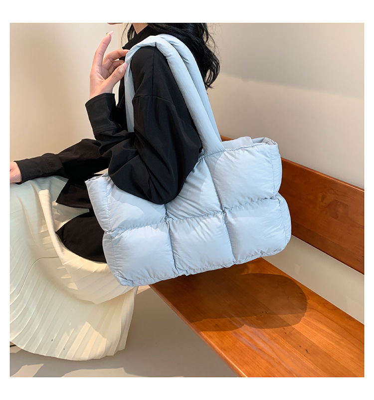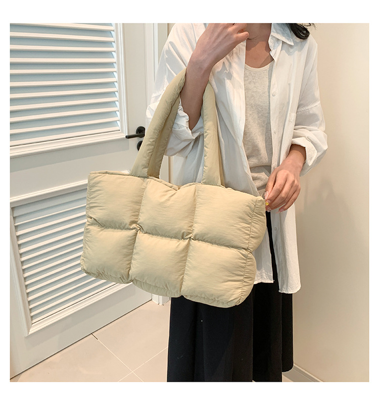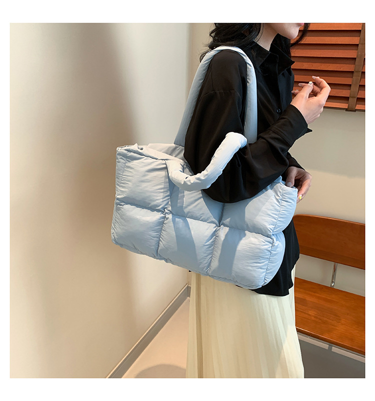 Large capacity commuter portable tote bag 2024 new women's sewing line cotton underarm bag dopamine shoulder bag