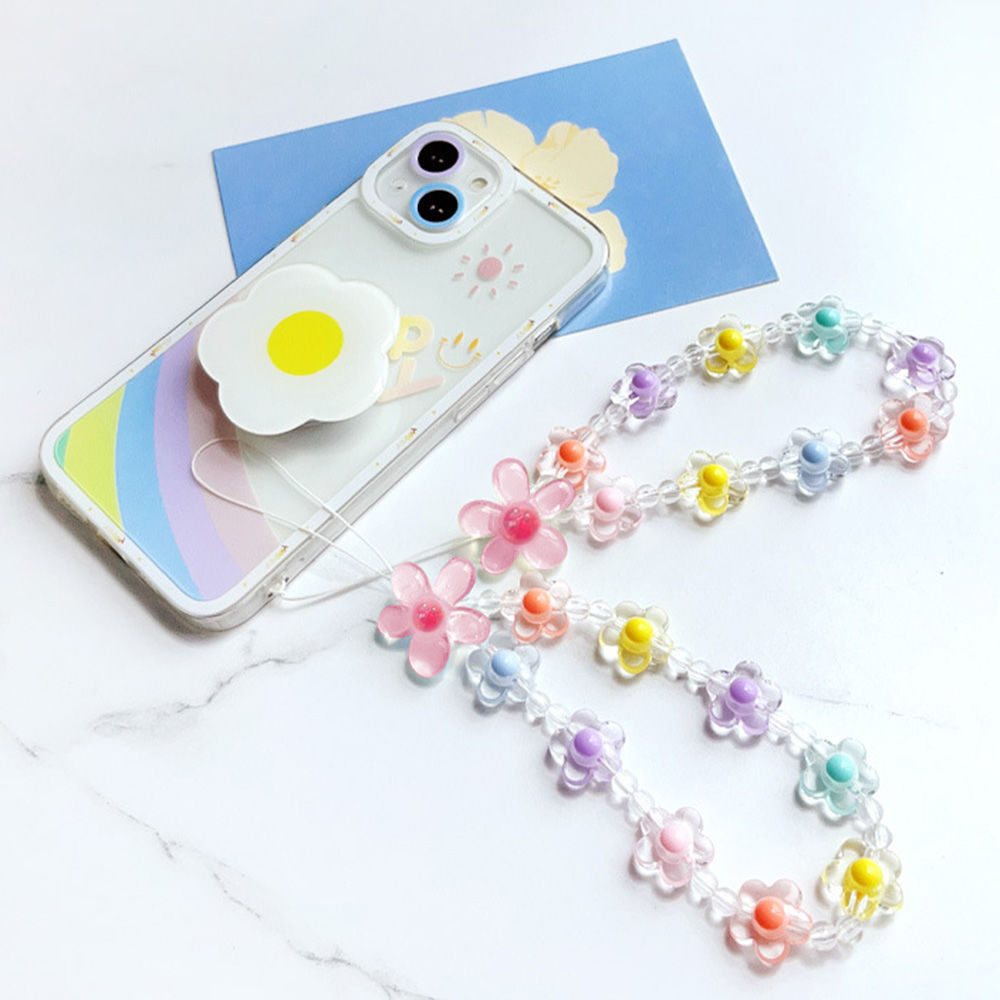 Colorful flower bracelet short mobile phone lanyard creative wrist chain high-grade handmade bead string pendant wrist