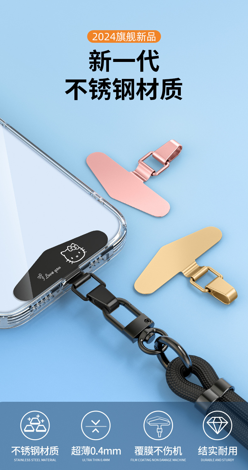 Stainless steel mobile phone lanyard clip ultra-thin solid gasket anti-lost Universal patch metal back sticker sling connecting piece