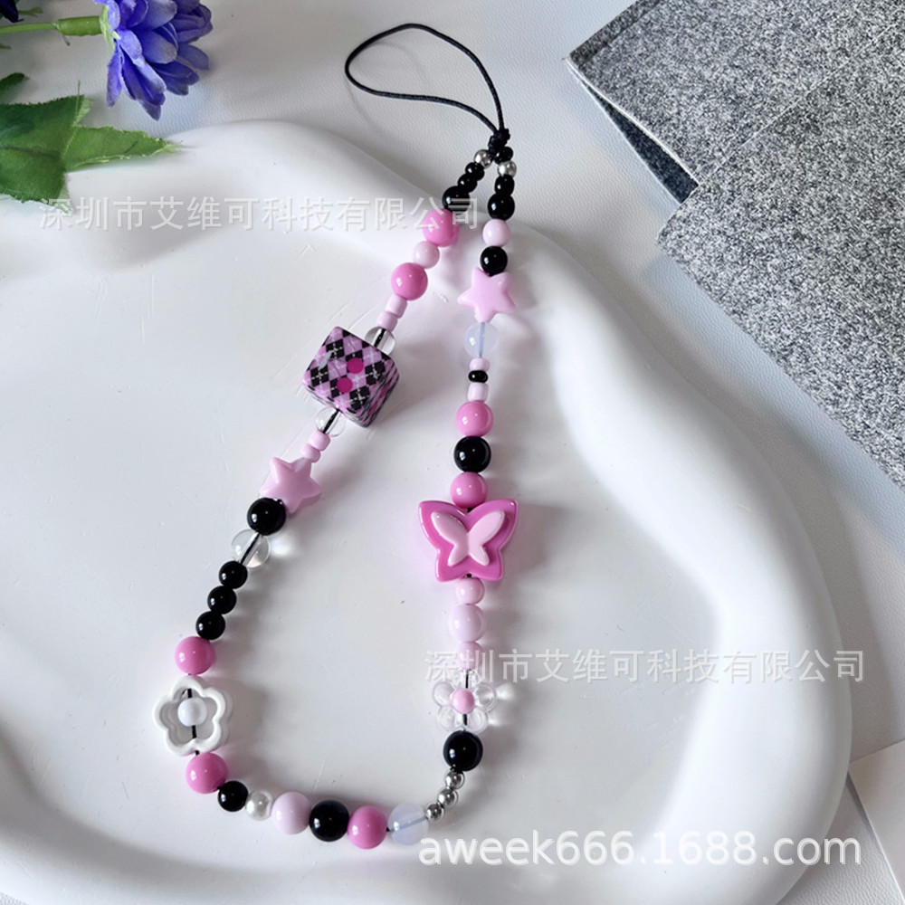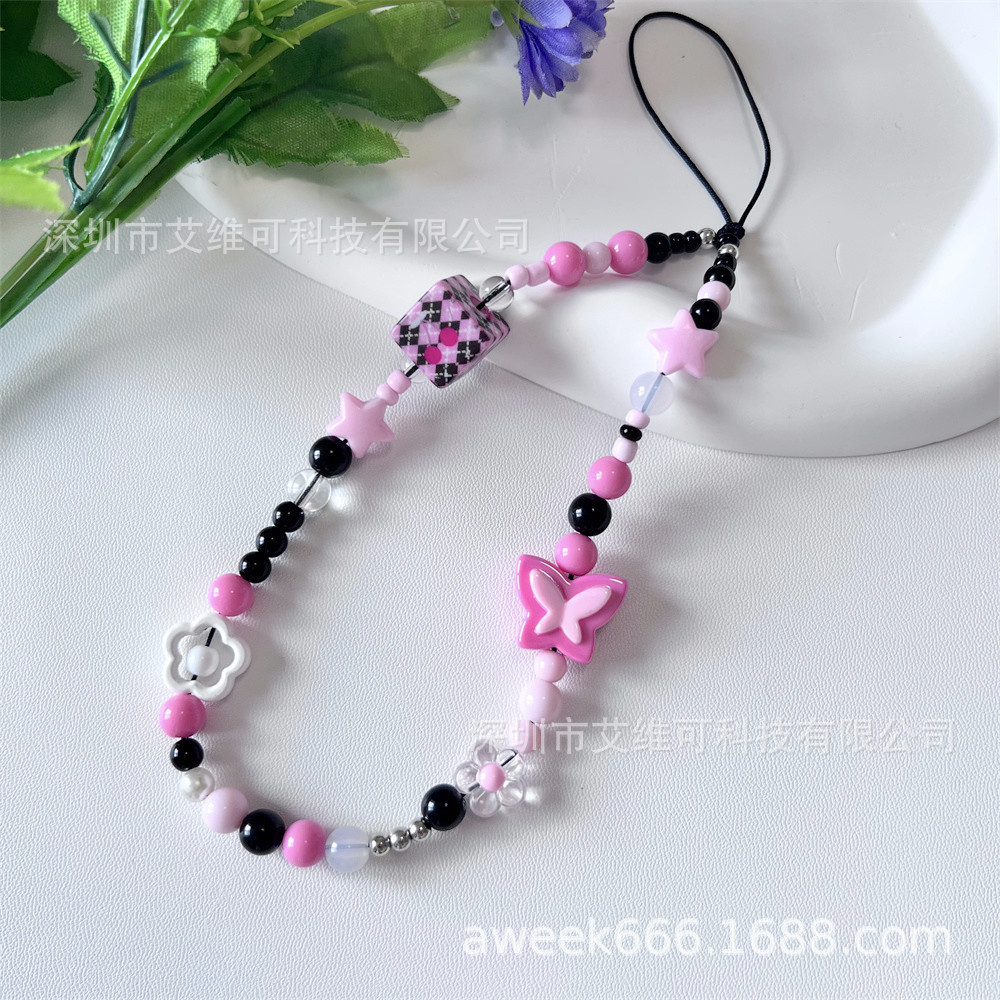 Y2g sweet cool butterfly flower ccd camera hand rope diy beads star mobile phone chain lanyard phone case pendant