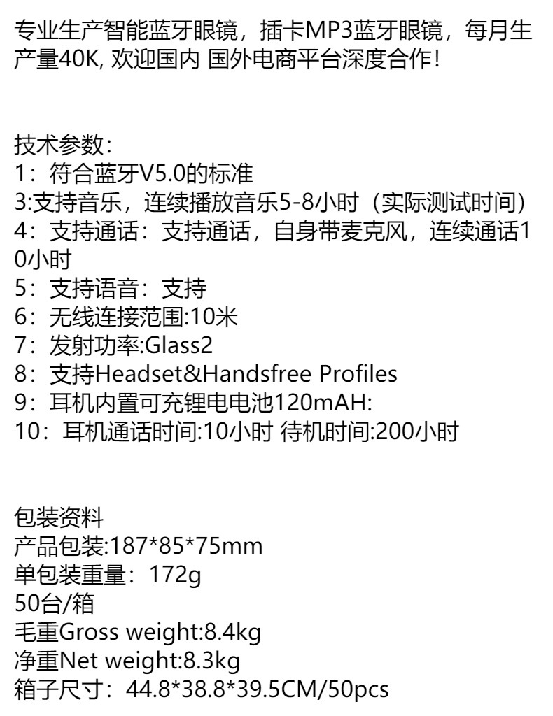 5.0 Bluetooth Card MP3 Glasses Headphones Listening to Songs Universal Multifunctional Sunglasses Sunglasses Polarized Unisex