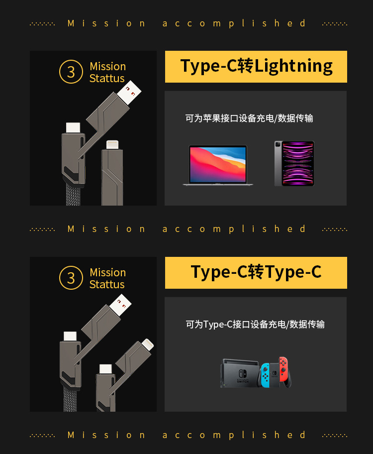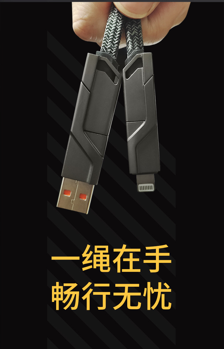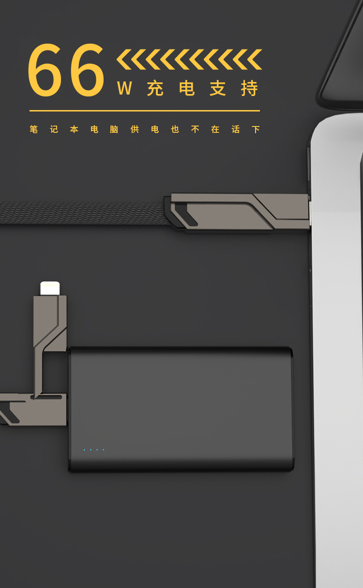 Cool four-in-one data cable multi-function adapter charging cable 66w100w super fast charging suitable for Apple
