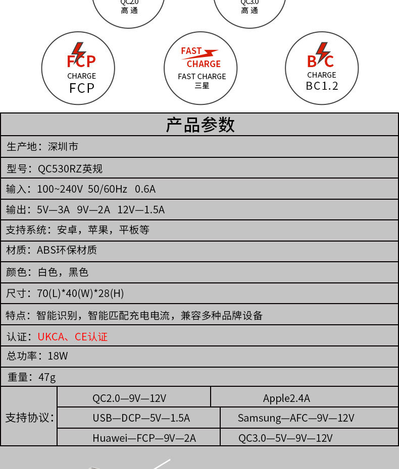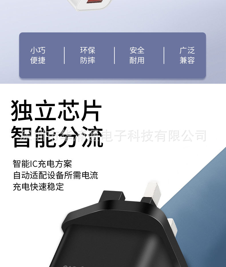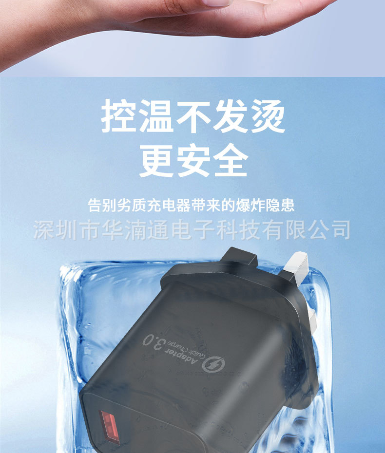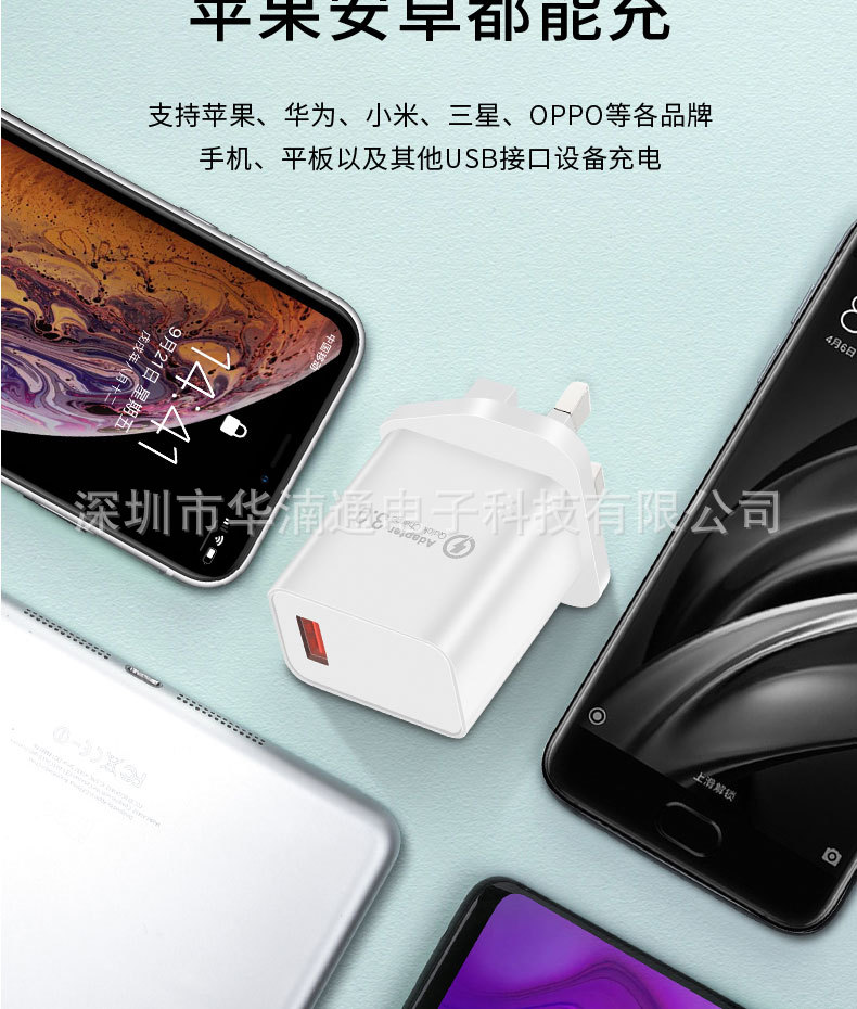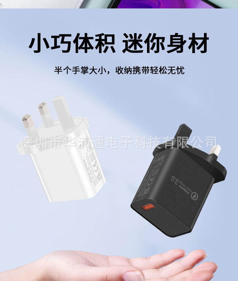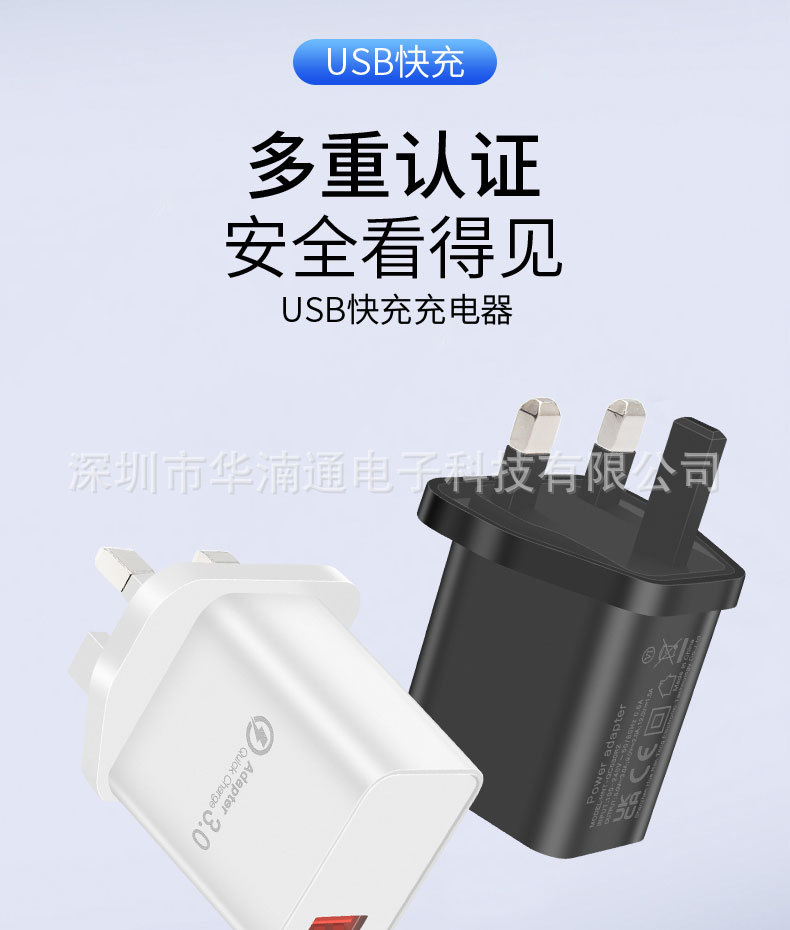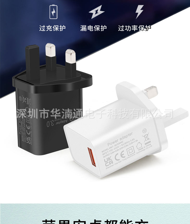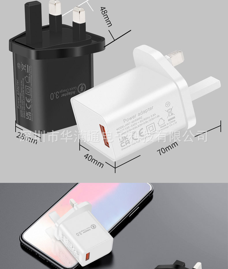 手机英规QC18W充电器 5V3A直充CE认证充电头 UKCA认证英规充电