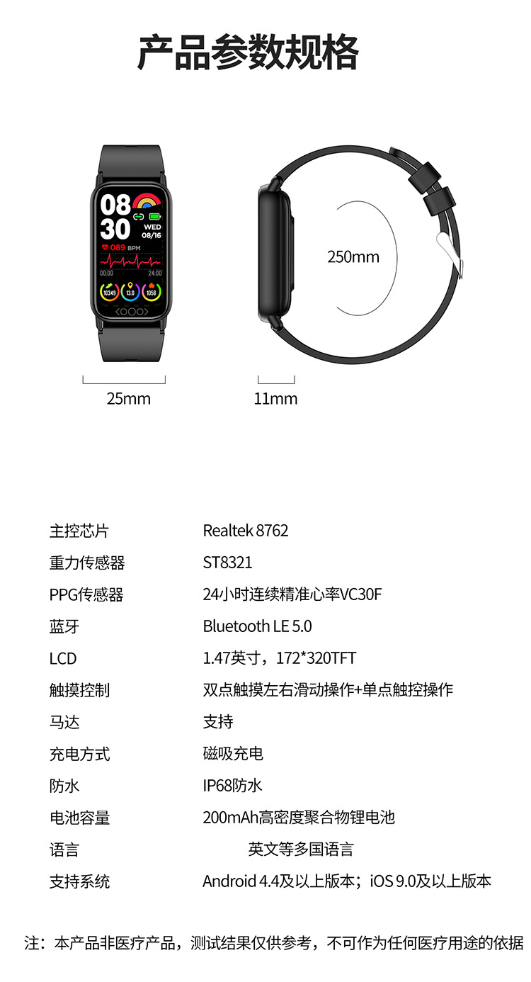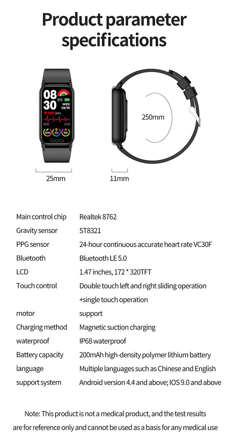 Cross-border TK72 smart bracelet monitoring heart rate body temperature sleep step counting multifunctional sports bracelet sports watch