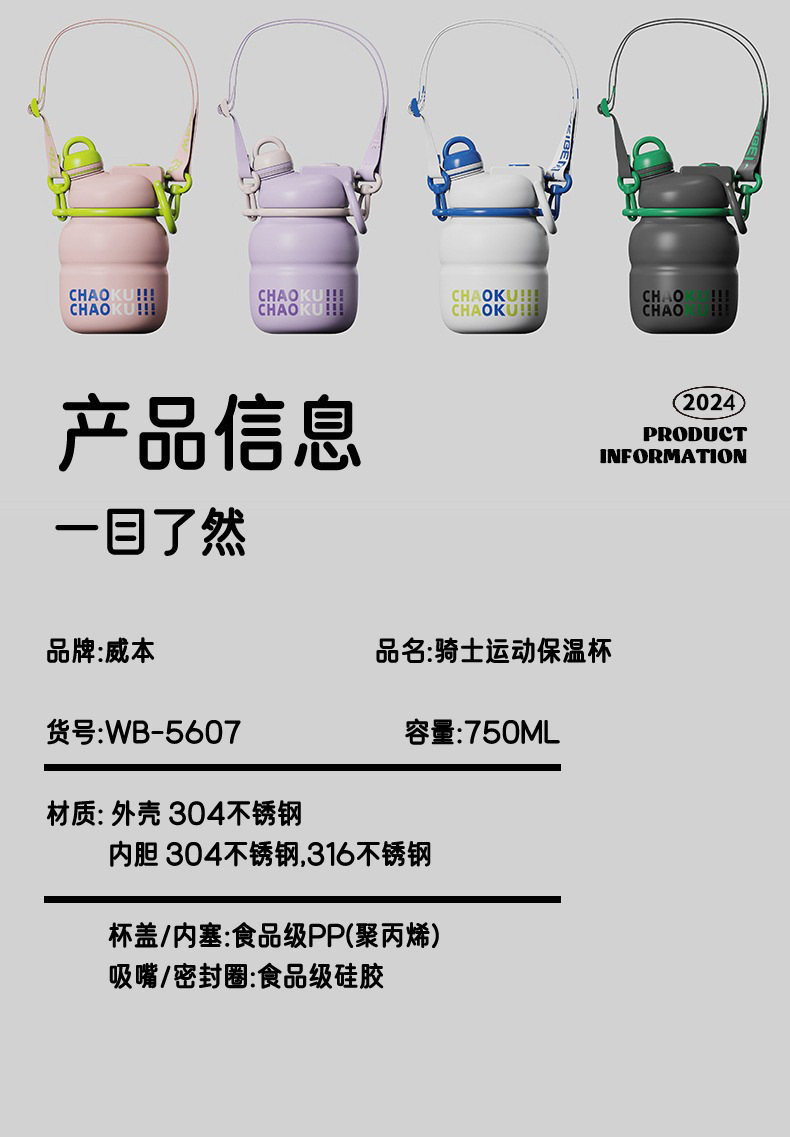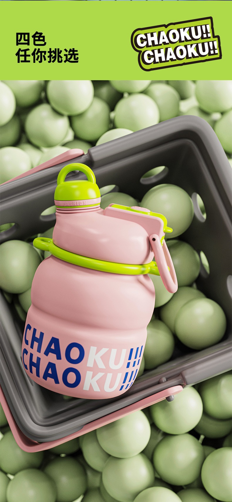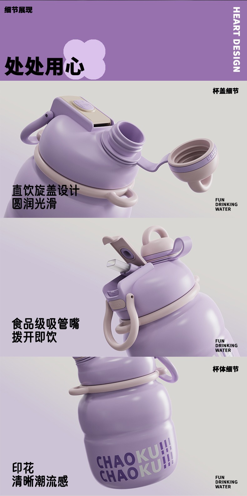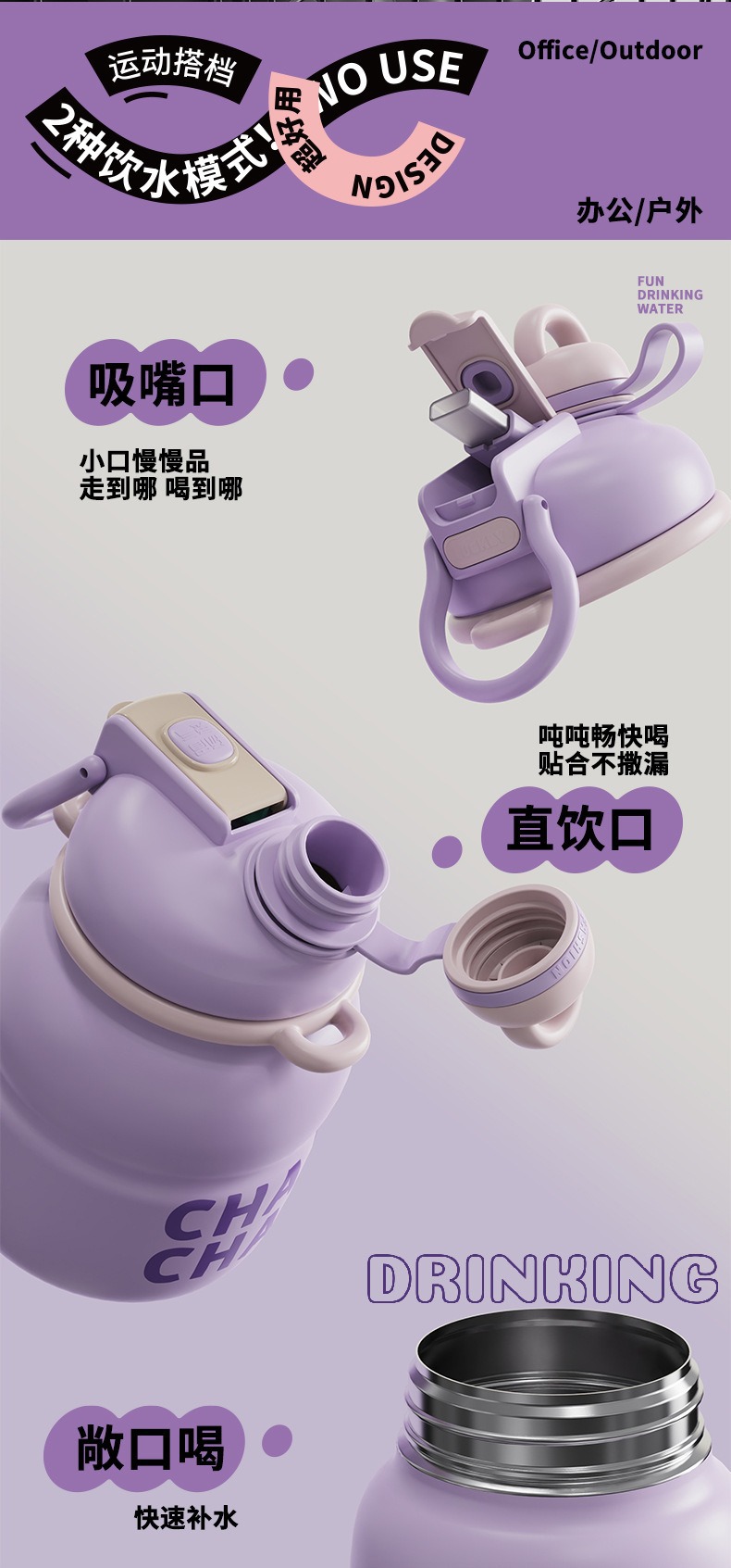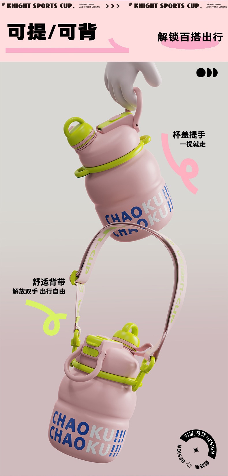 316 large capacity straw double drink stainless steel cup strap men and women outdoor student sports water Cup Vacuum Thermos cup