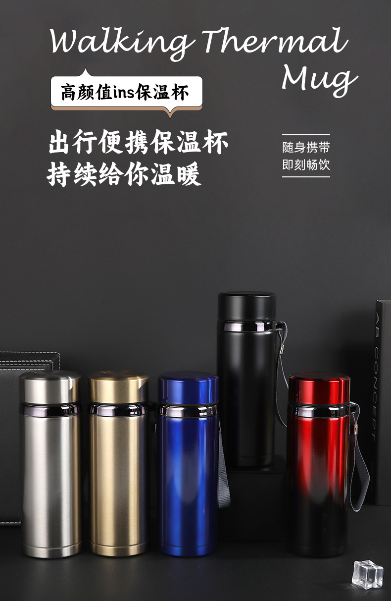 Internet celebrity ins gradient color insulation Cup 304 stainless steel sling water Cup portable car business drinking cup gift