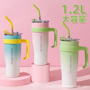 Popular Internet celebrity giant vacuum cup handle car ice cream cup large capacity portable cold insulation straw Cup