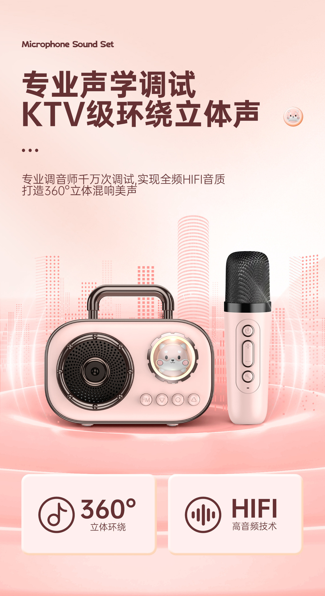 Portable Bluetooth speaker home wireless karaoke baby audio with microphone microphone outdoor singing small family KTV