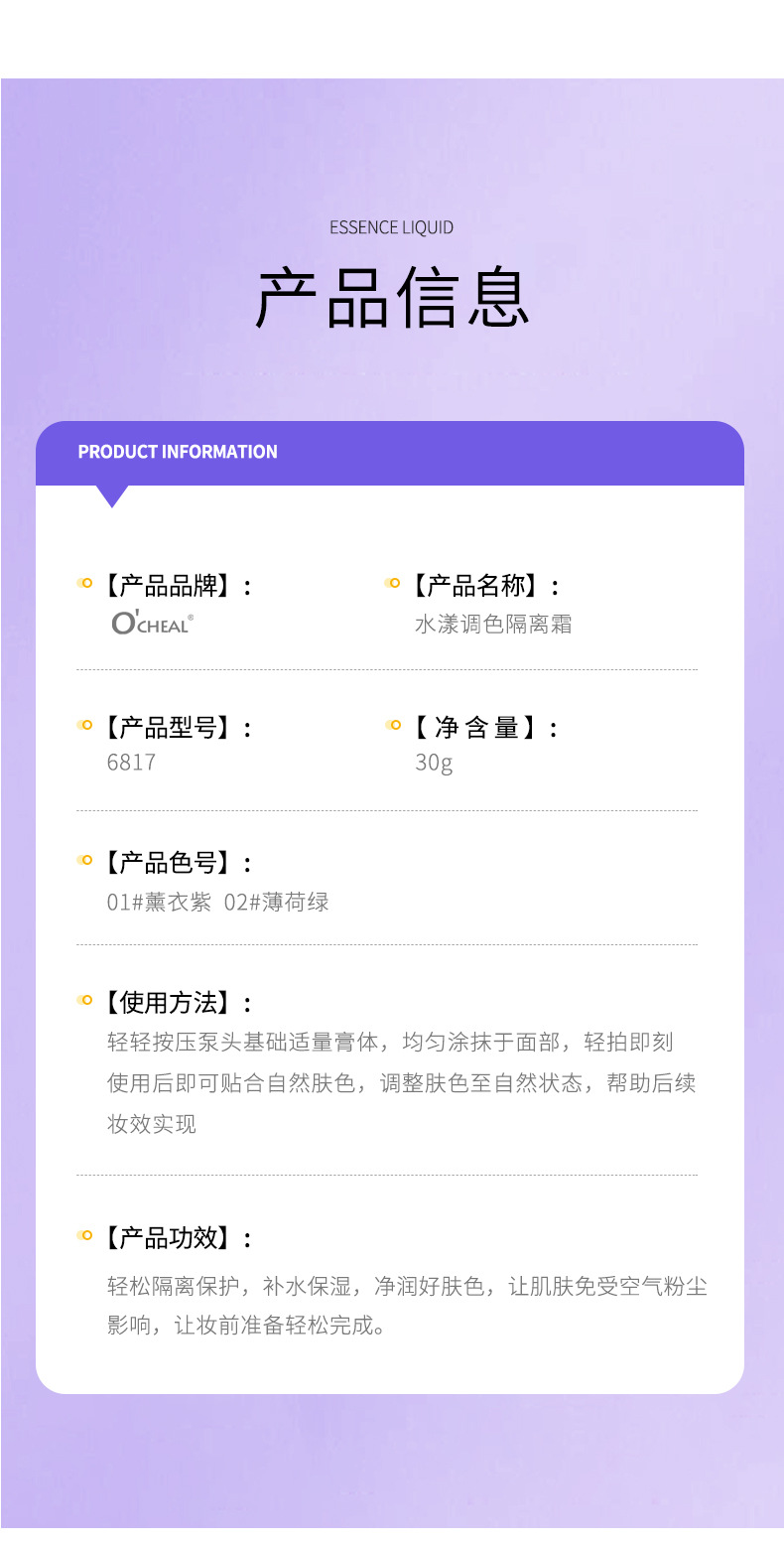 Ouqianya Shui Yang Color Change Cream Hydrating and Moisturizing Invisible Pore Concealer Makeup Front Milk Isolation Milk Shake Voice on behalf of Hair