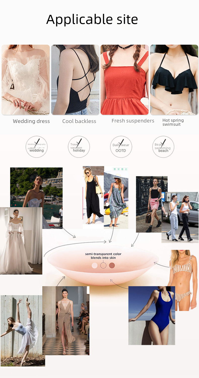 Self-Adhesive and Waterproof:This silicone bra pad is self-adhesive and waterproof, making it easy to apply and perfect for any weather condition. It ensures your bra stays in place all day long.