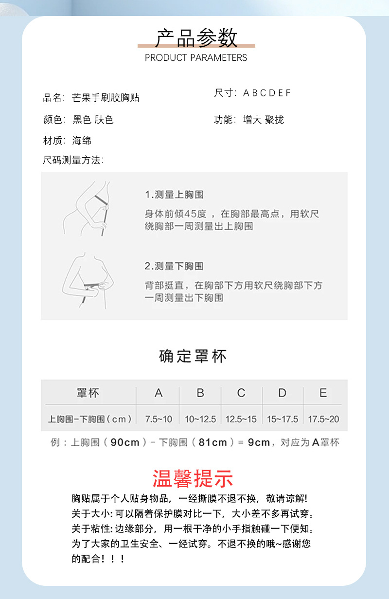 Hand brush glue mango chest stickers push up breast stickers anti-bump nipple stickers exposure stickers invisible bra stickers packing box