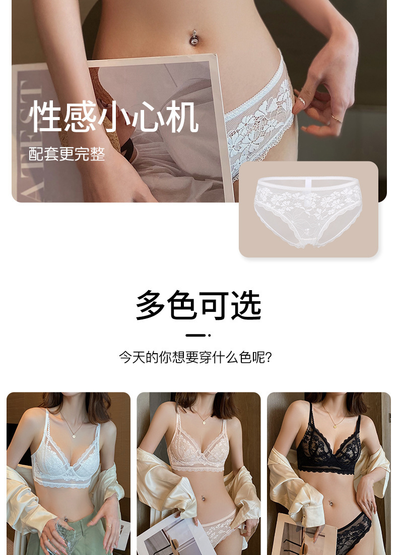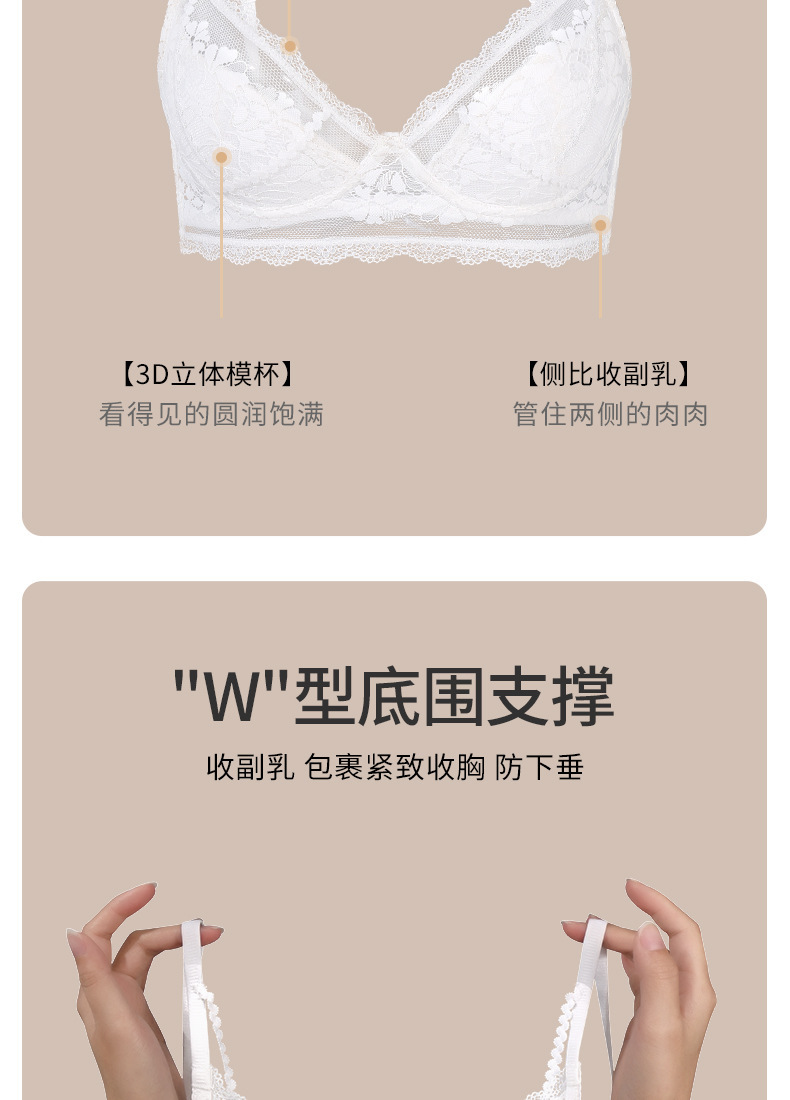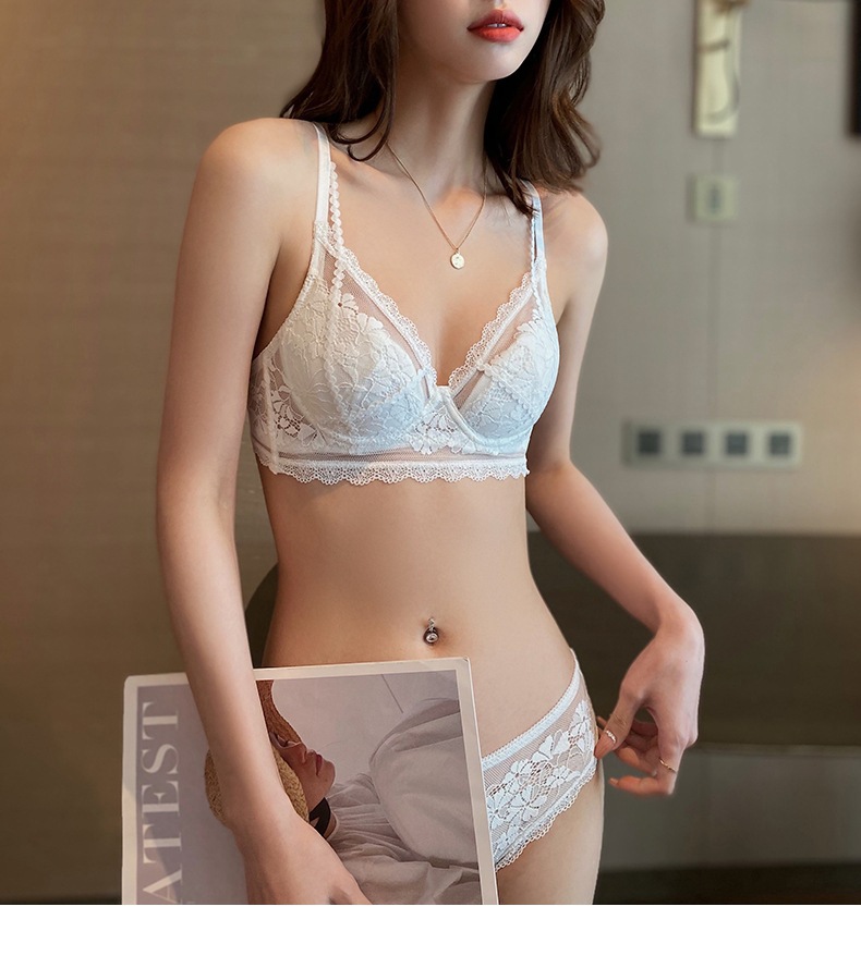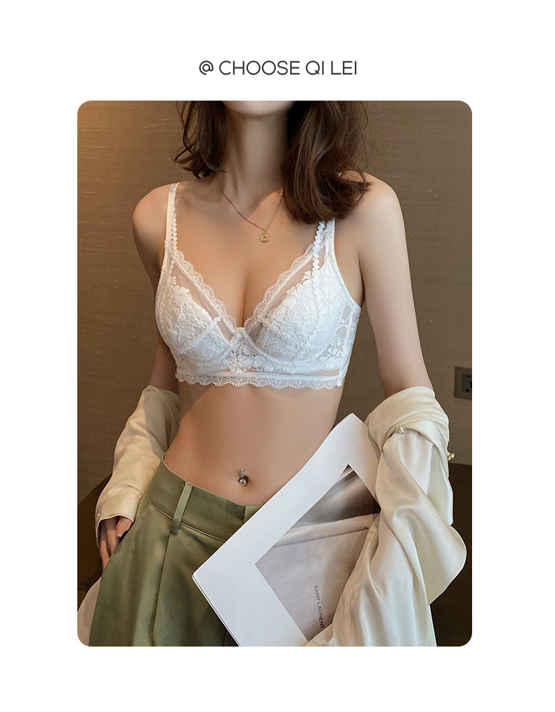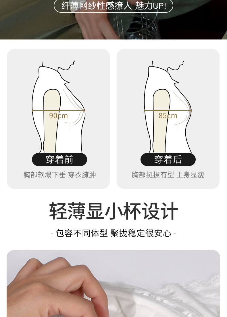 French style Deep V sexy underwear women's summer thin small chest push up upper support lace breathable chest slimming small comfortable bra suit