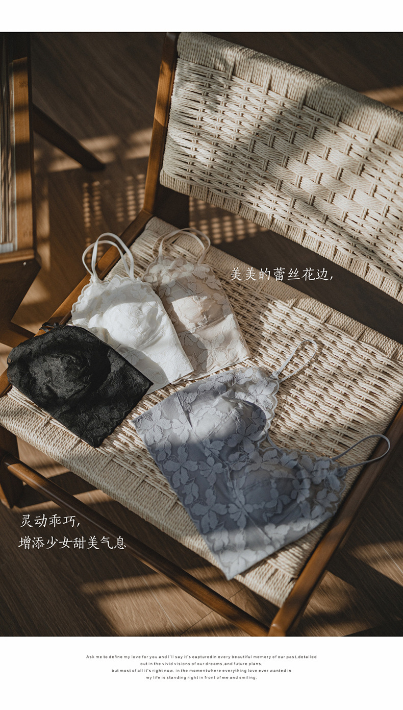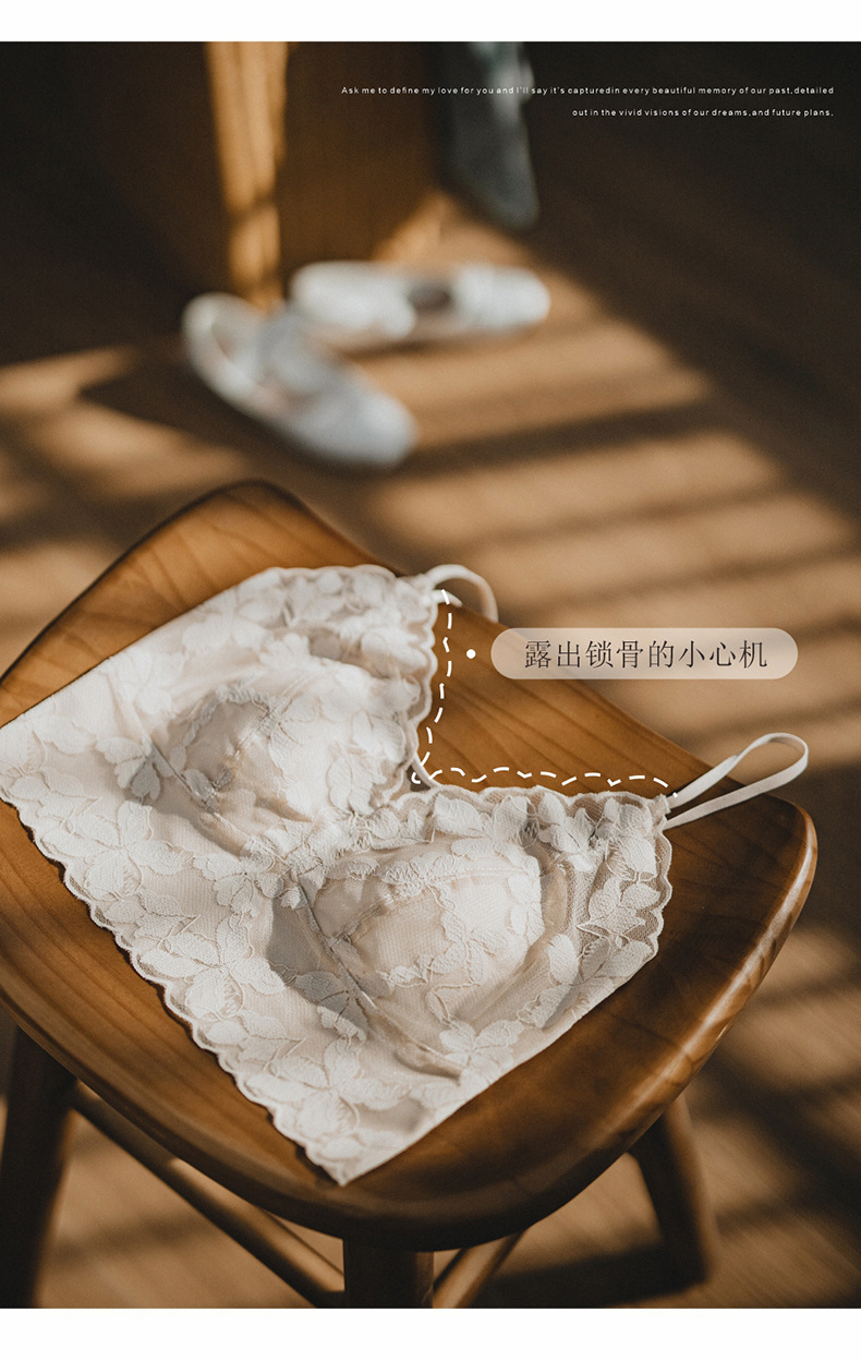 French Style Underwear Women's Thin Push-up Rimless Sexy Lace Traceless Beautiful Back Tube Bottom Thin Shoulder Sling Bra