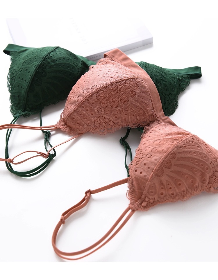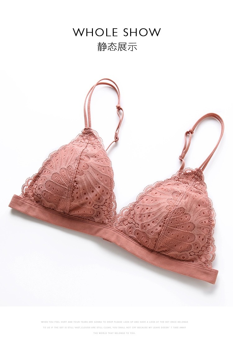 Non-breasted lace French triangle cup wireless thin underwear women's small chest upper support non-empty cup comfortable bra