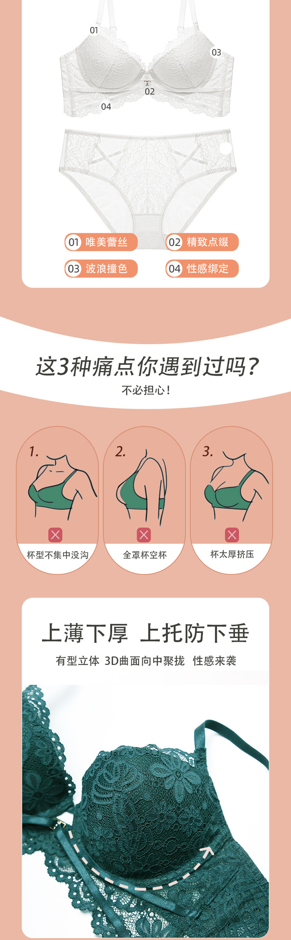 French Style Sexy Lace Underwear Set Gather Breathable Underwear Women's Anti-sagging Inner Lace Underwear Set Customized
