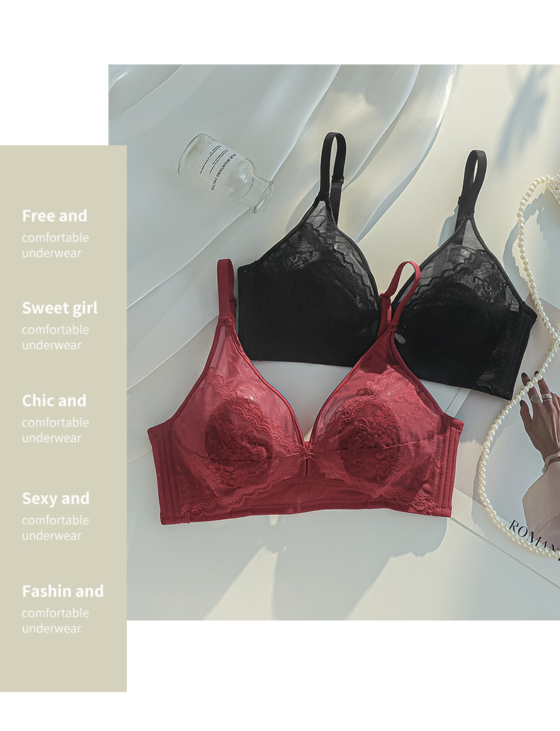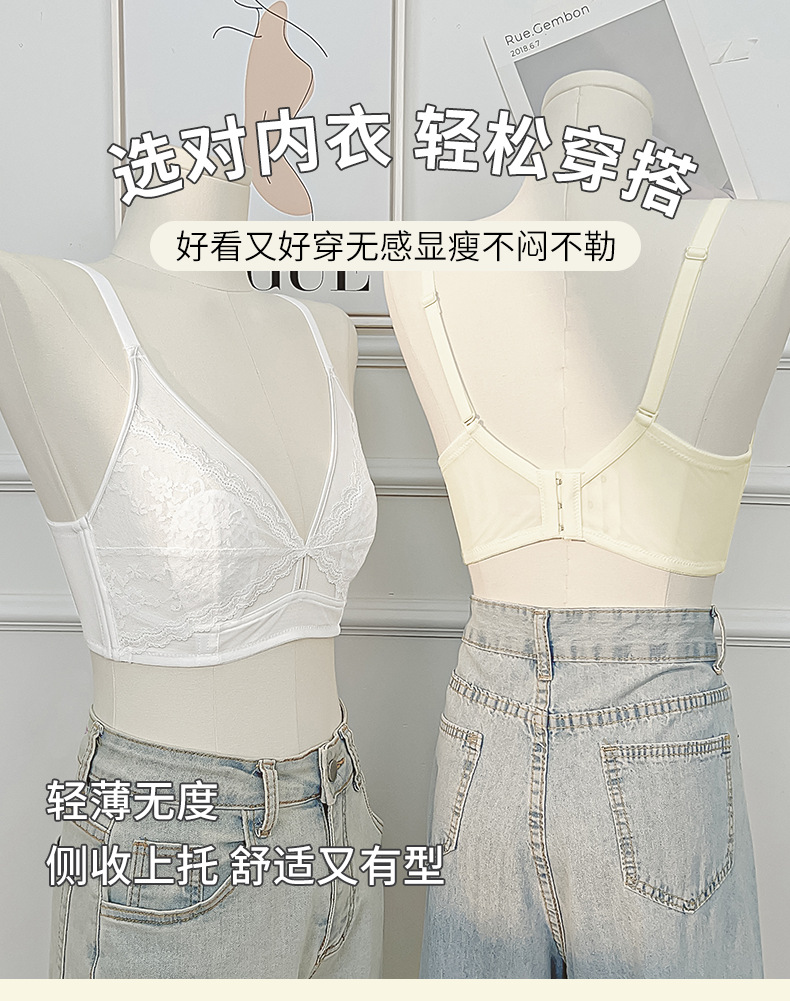 Big chest and small chest underwear summer thin women's breast collection anti-sagging sexy lace ultra-thin rabbit ears bra