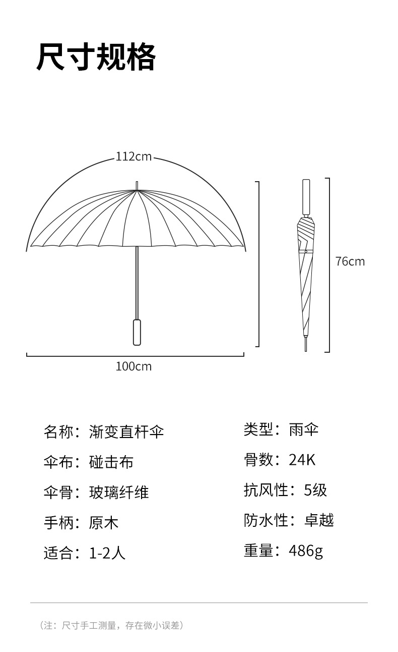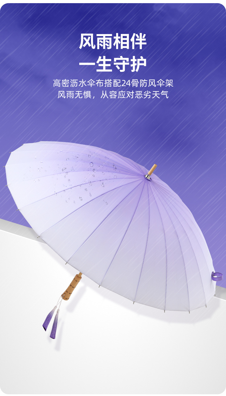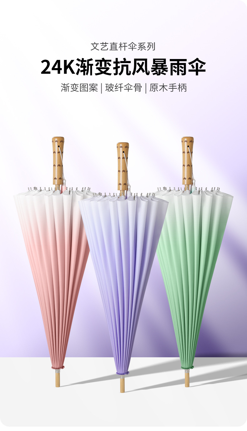 Gradient 24 Bone Umbrella Retro Wooden Handle Hand Open Straight Rod Umbrella Wholesale Sunny Umbrella Wind Resistant Advertising Umbrella Gift Long Handle Umbrella