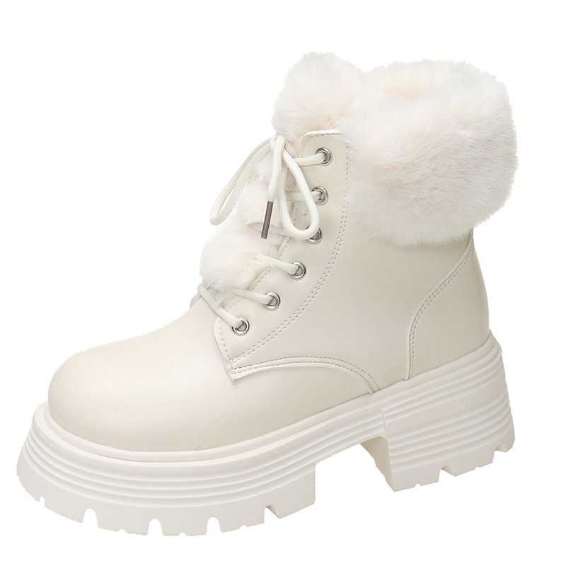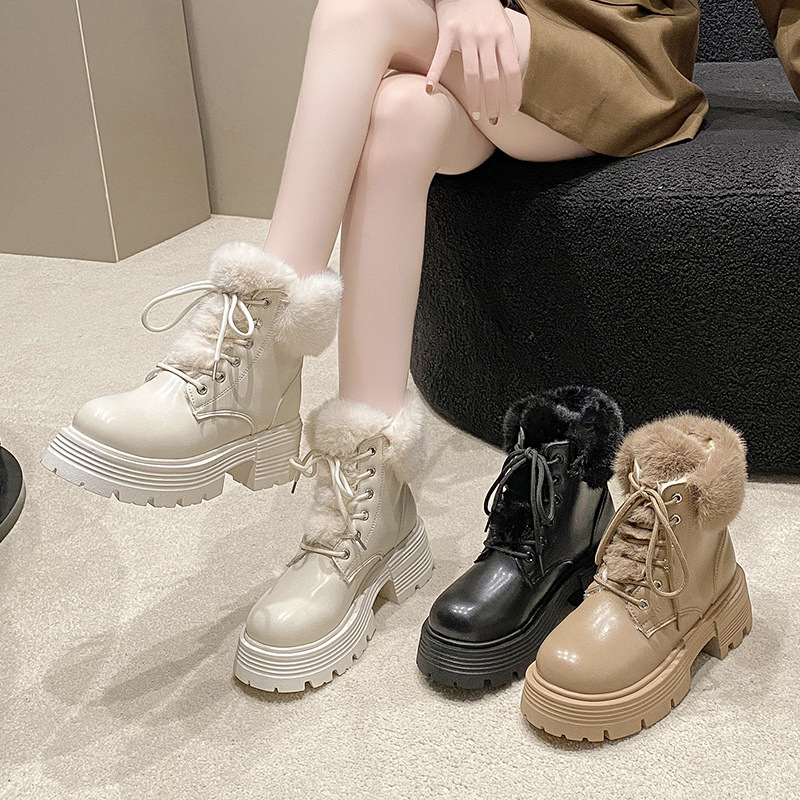Winter thick heel Martin boots fleece-lined rabbit fur thick bottom short boots Women's soft leather cotton shoes women's snow boots mother cotton boots