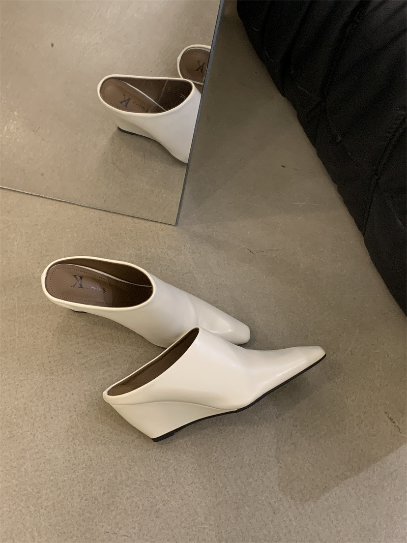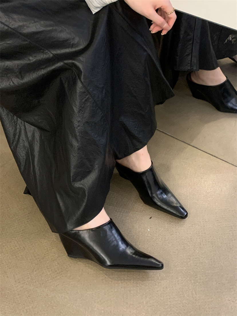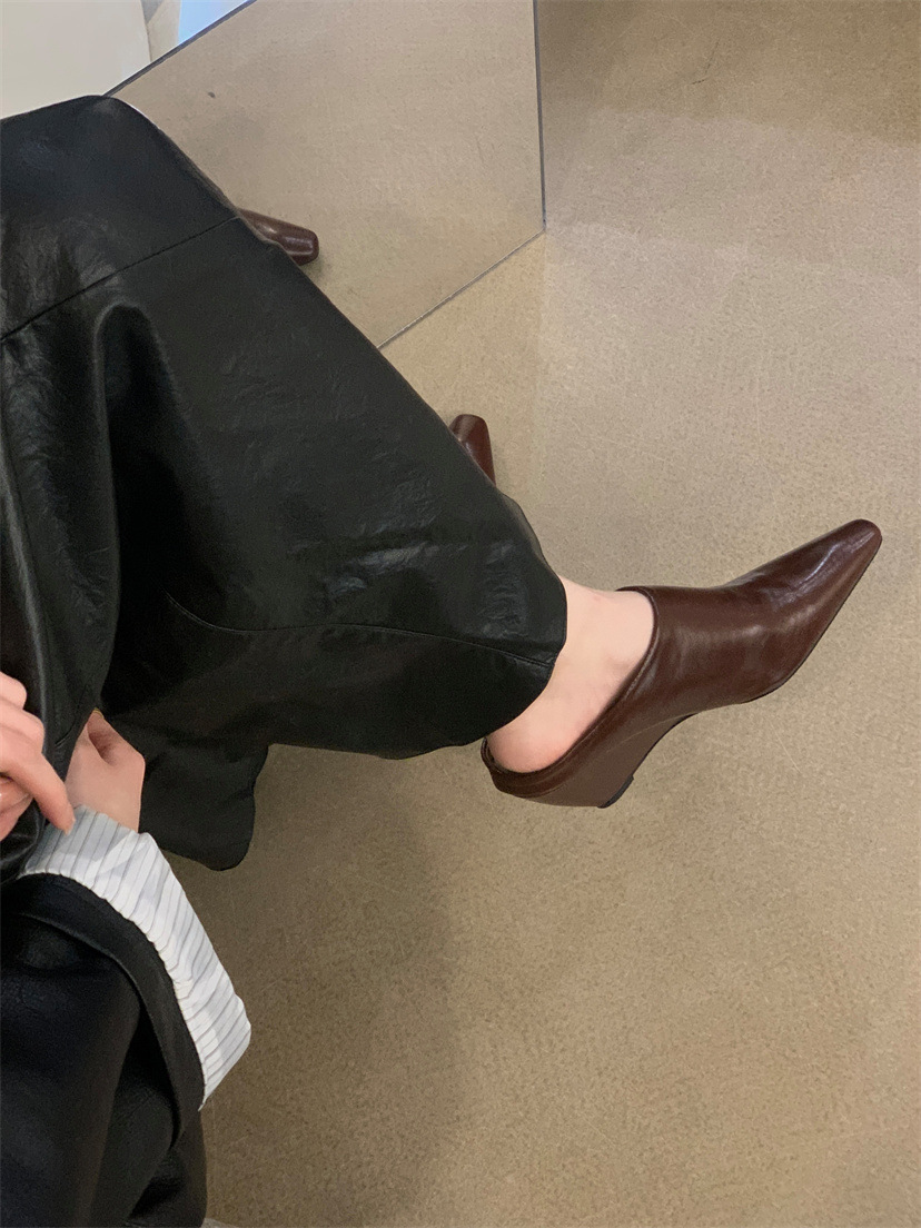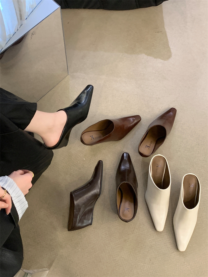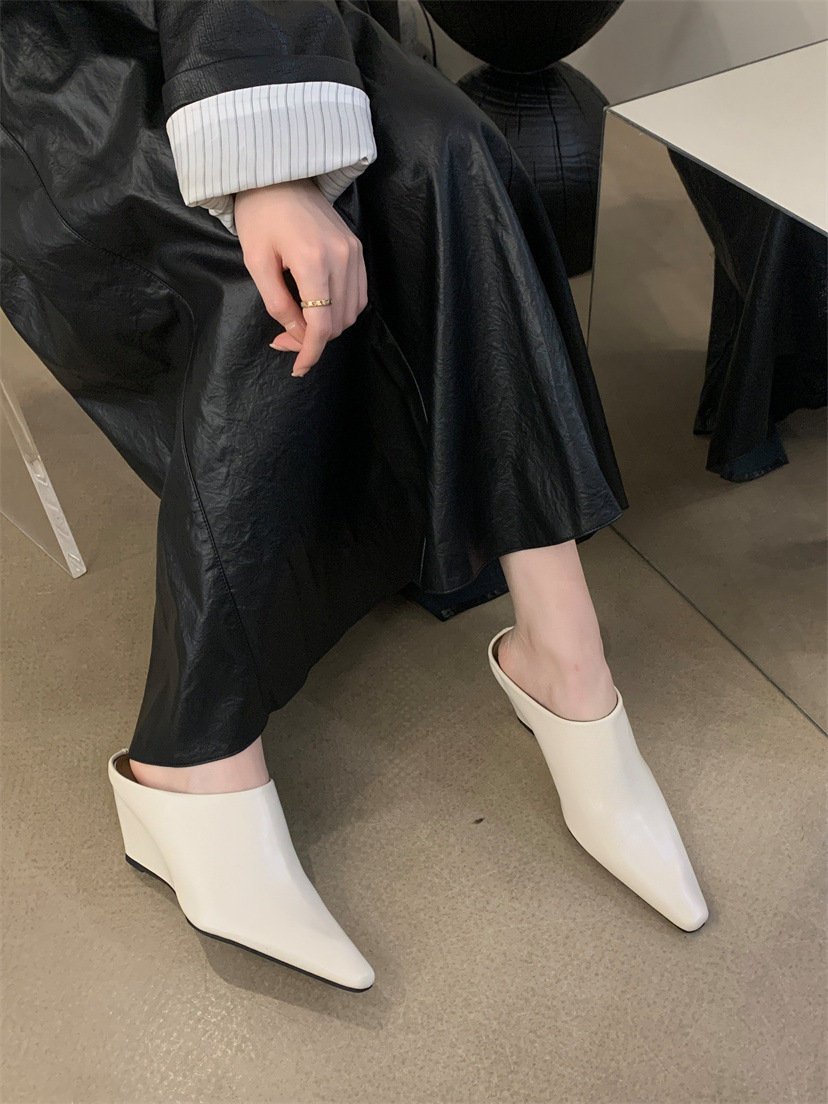 2024 spring and summer new closed toe wedge slippers Women's European and American fashion half slippers niche design slip-on high heel
