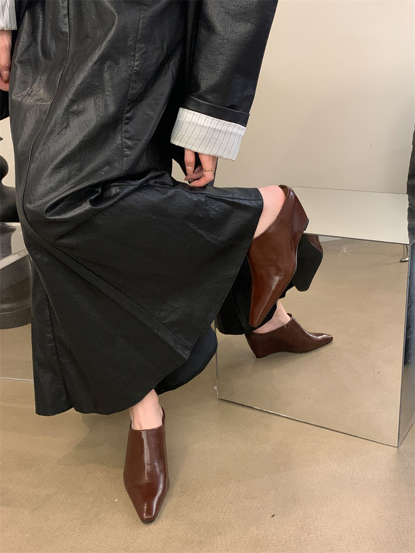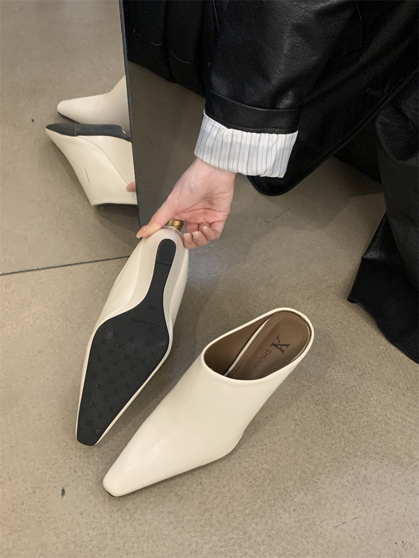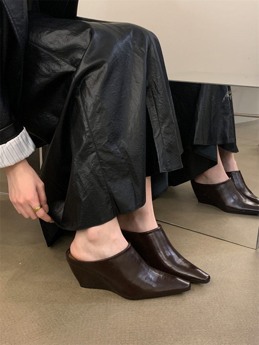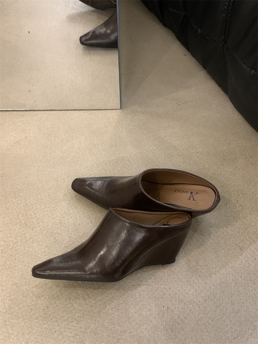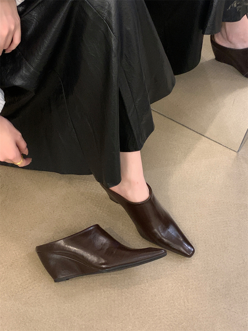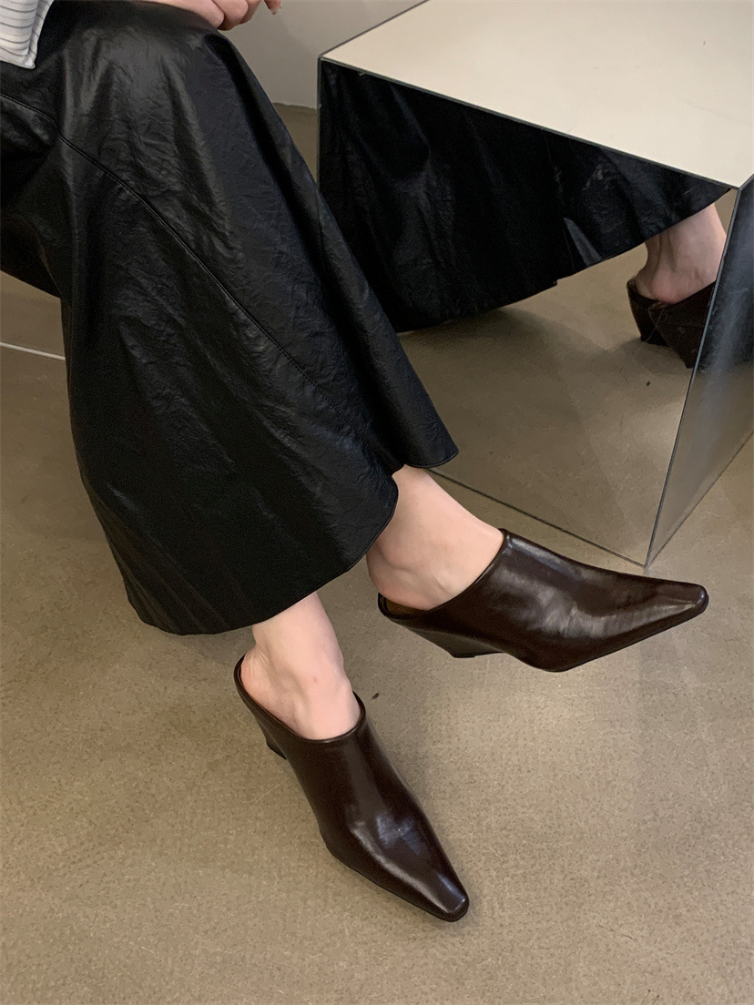 2024 spring and summer new closed toe wedge slippers Women's European and American fashion half slippers niche design slip-on high heel