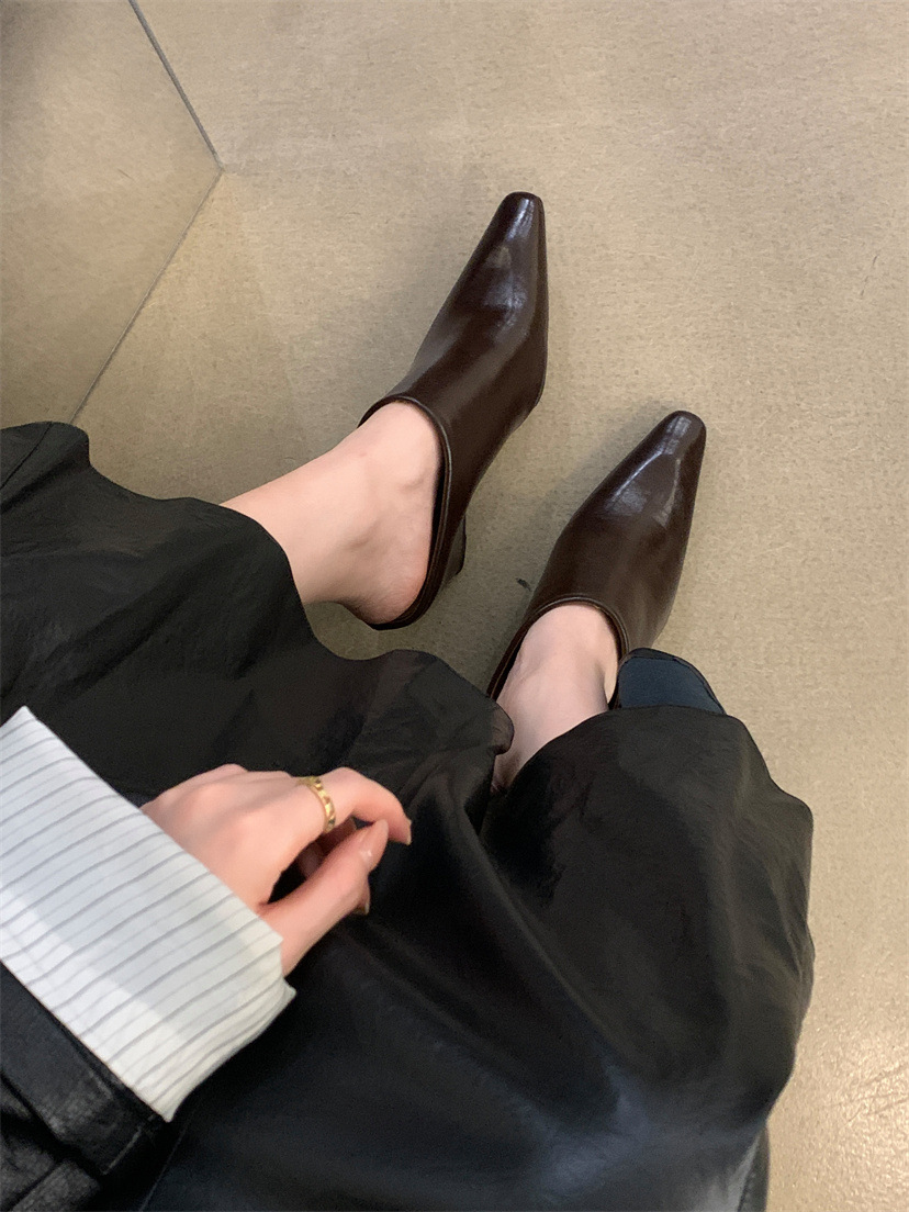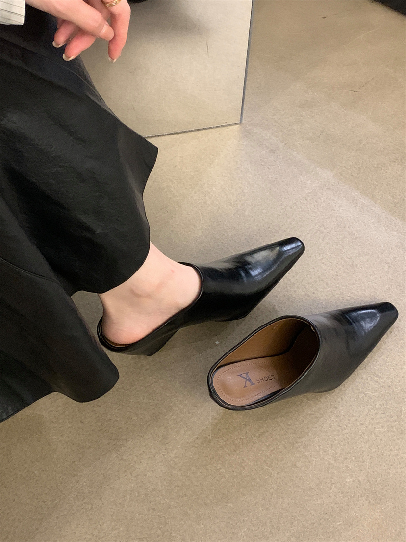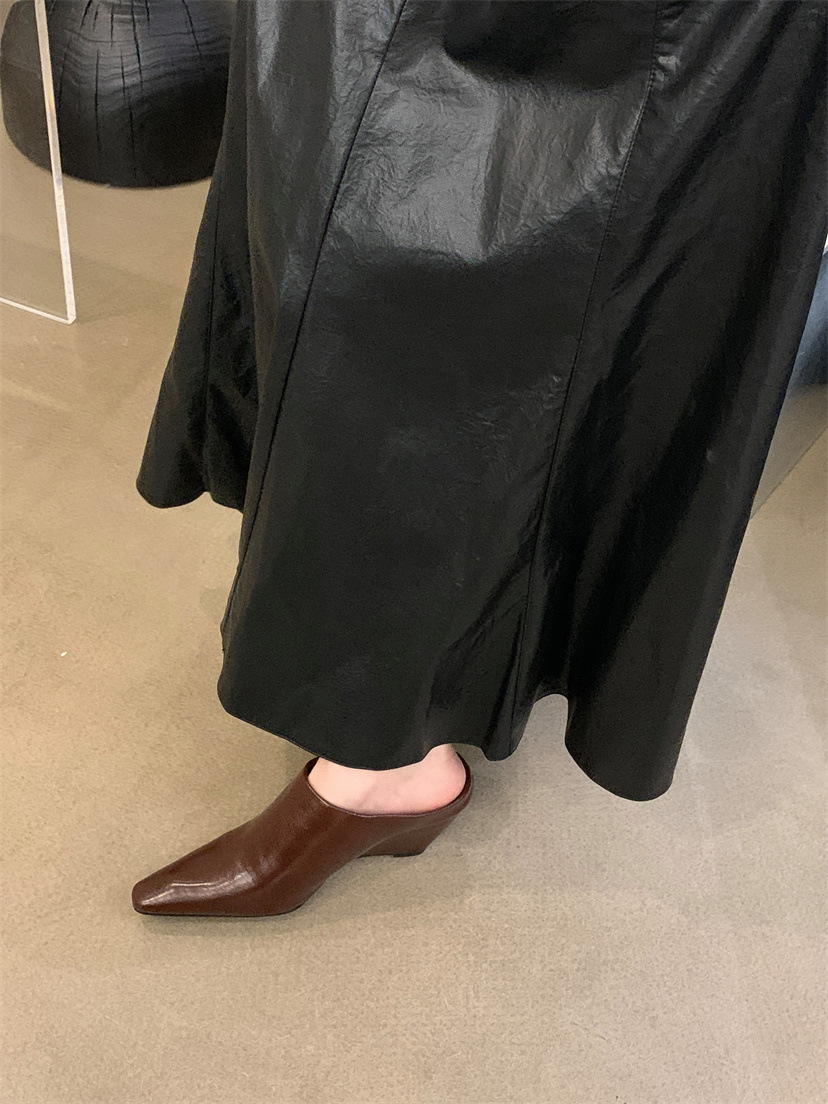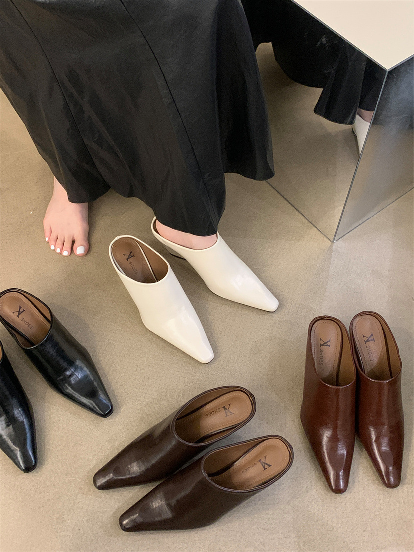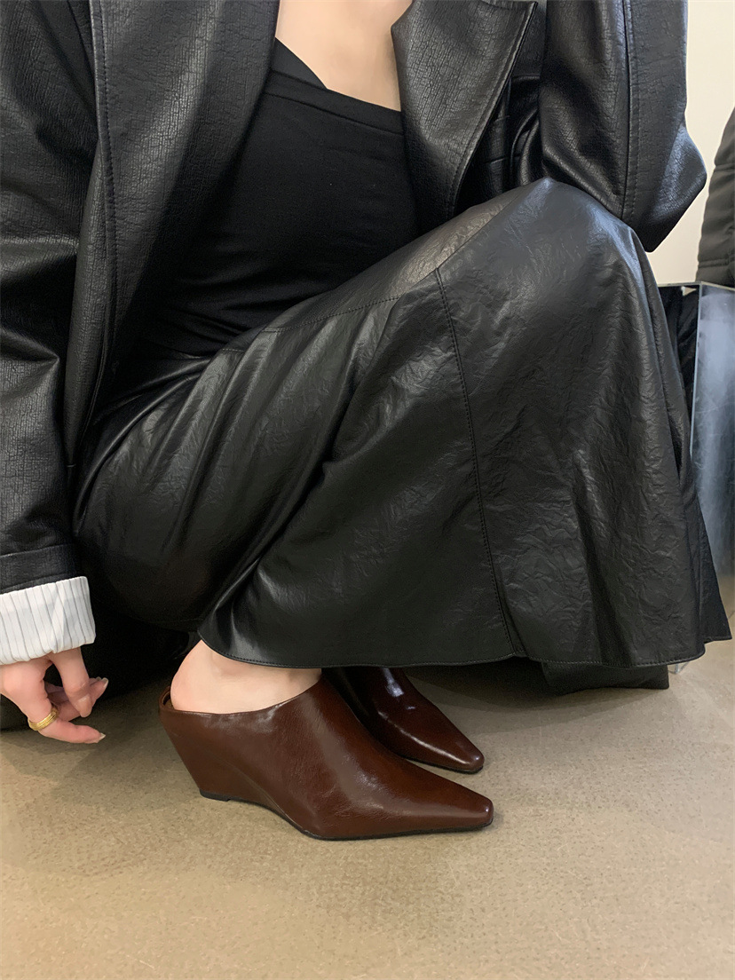 2024 spring and summer new closed toe wedge slippers Women's European and American fashion half slippers niche design slip-on high heel