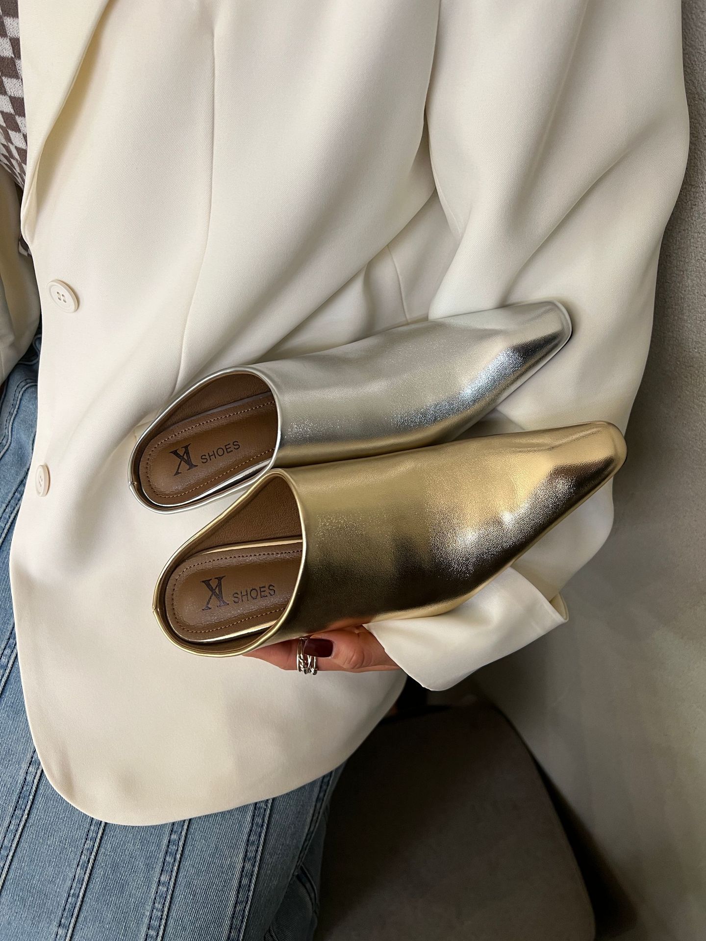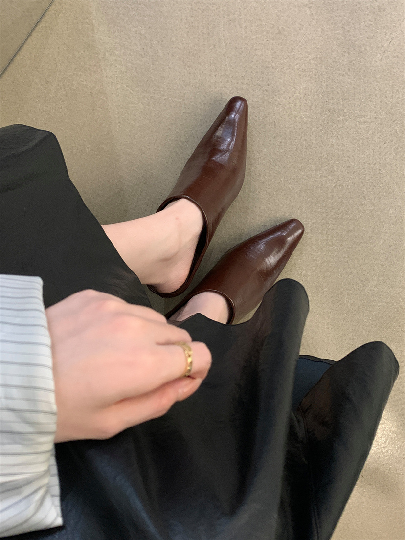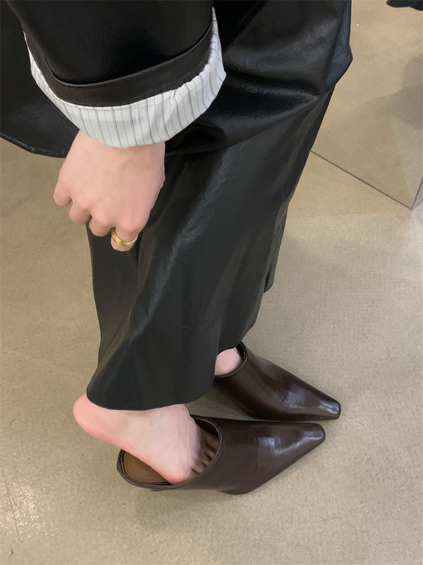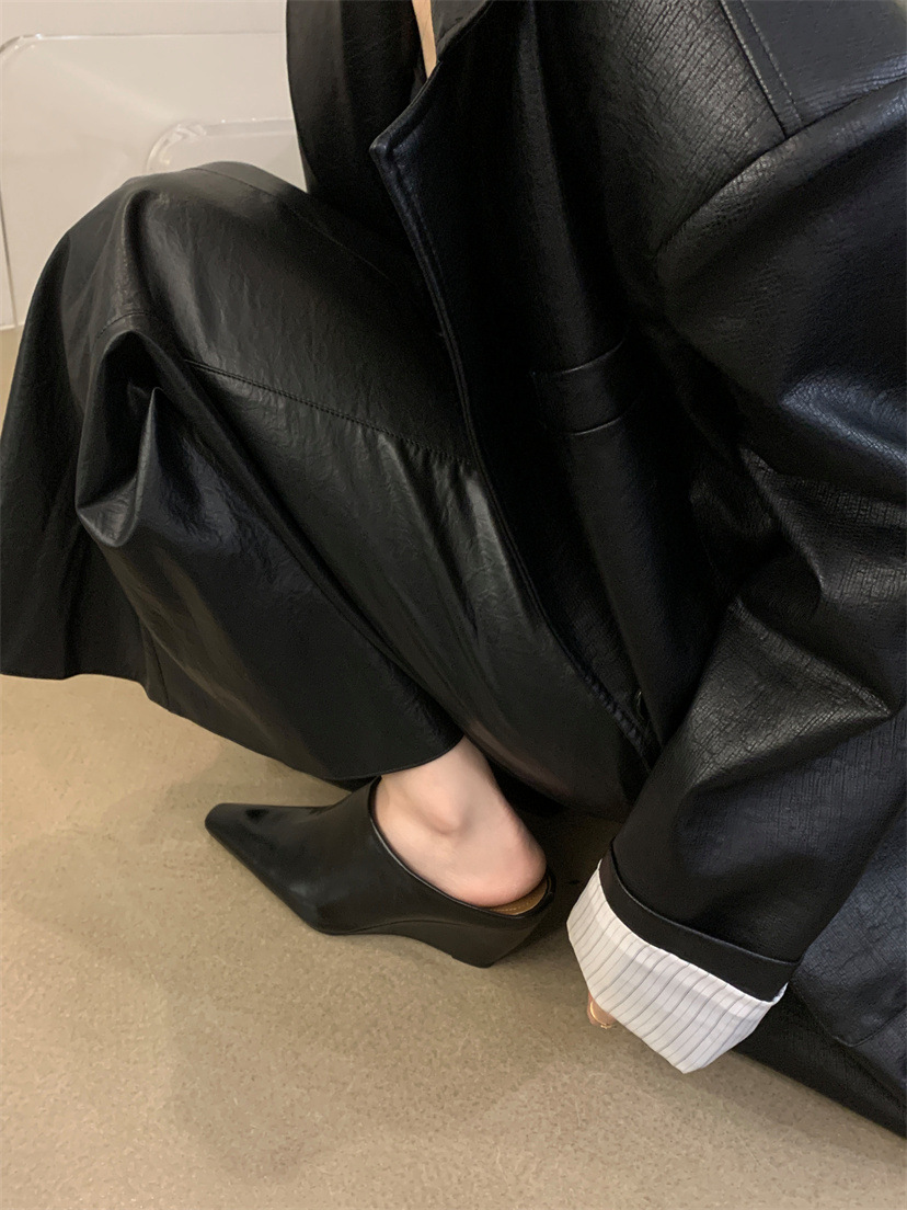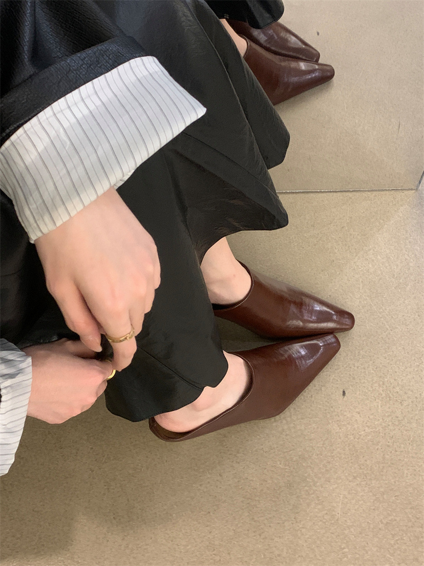 2024 spring and summer new closed toe wedge slippers Women's European and American fashion half slippers niche design slip-on high heel