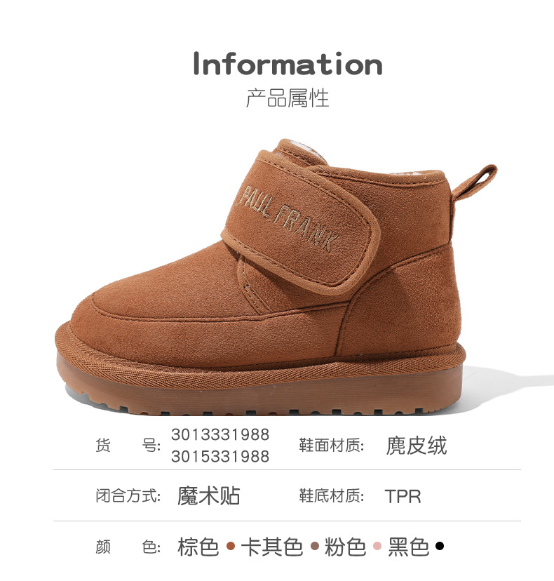 Big mouth/monkey children's shoes 2023 Winter new big cotton snow boots boys short boots cotton shoes girls fleece-lined baby shoes
