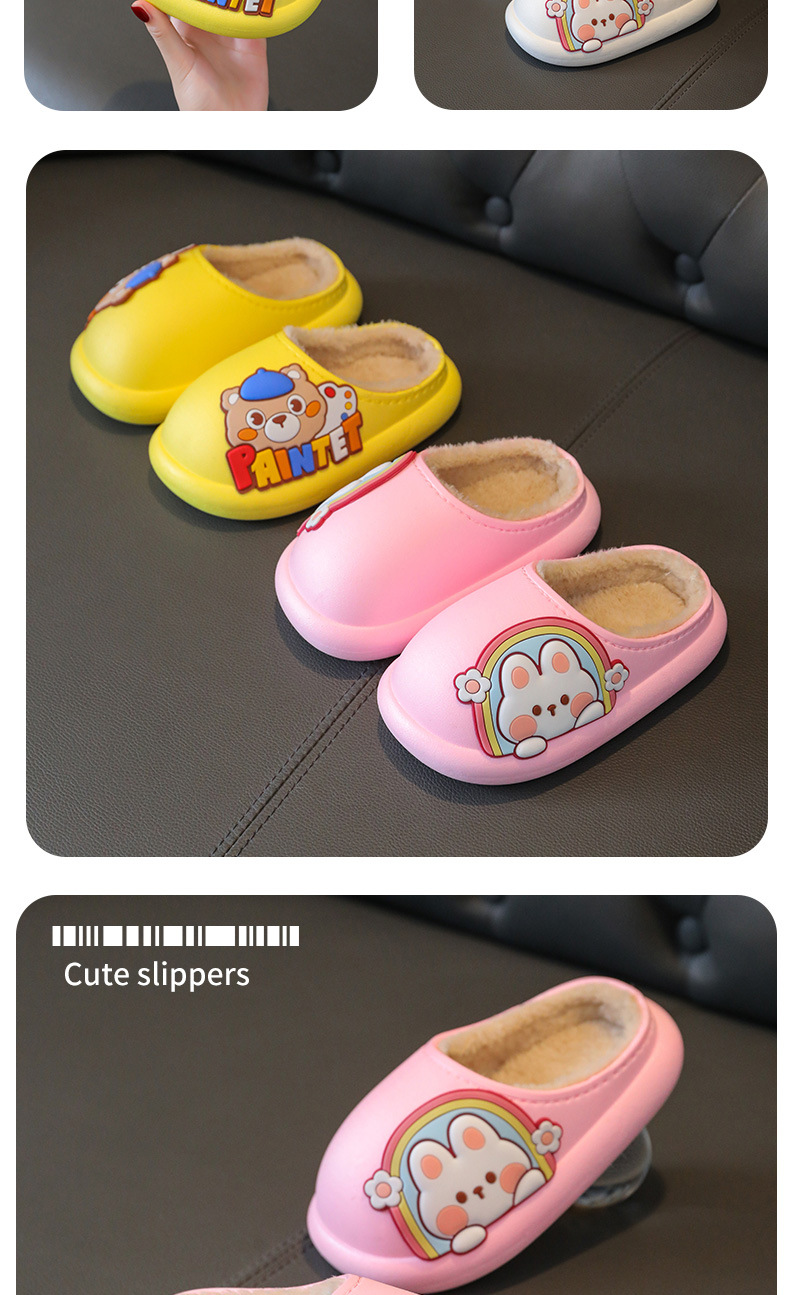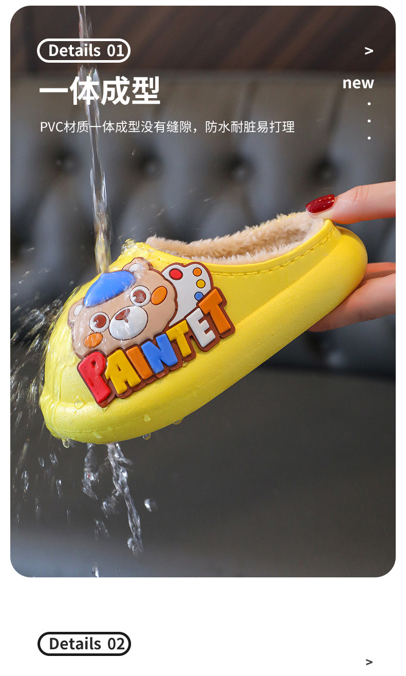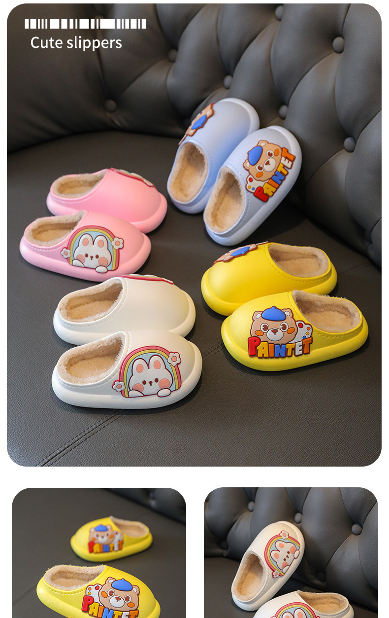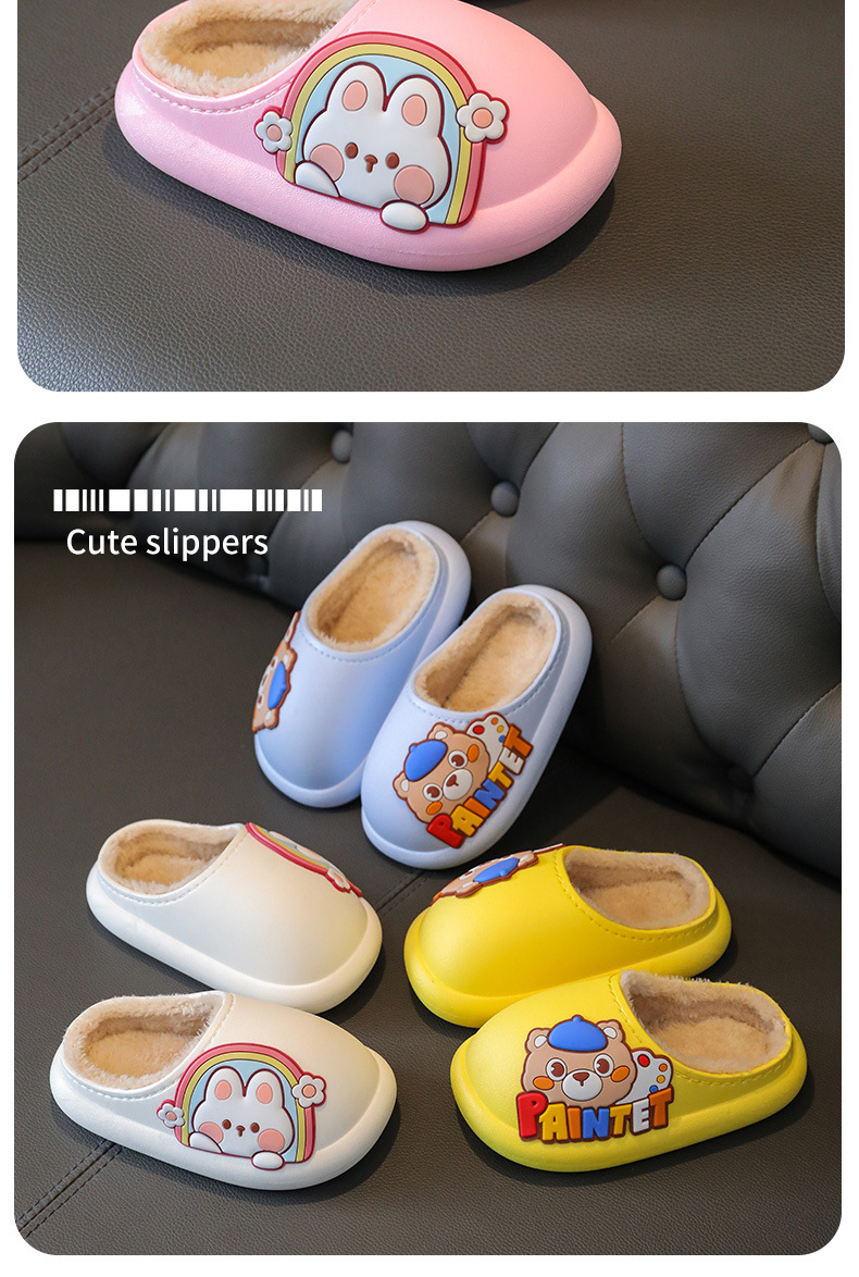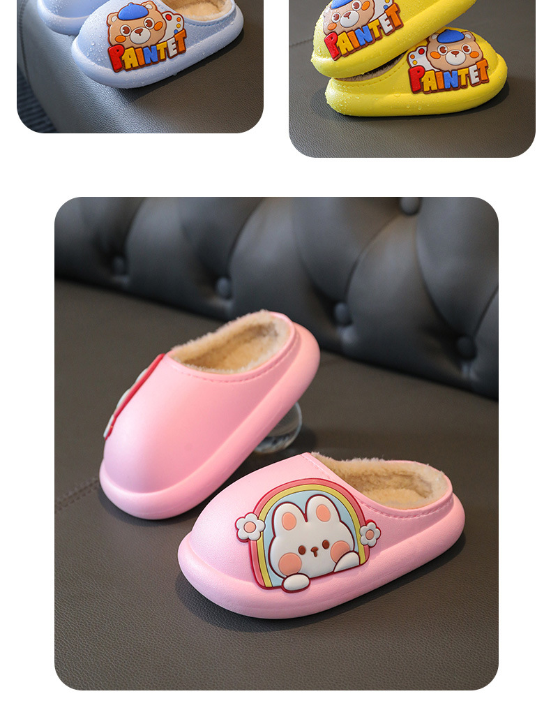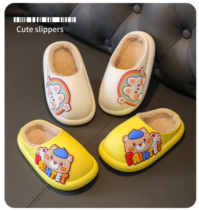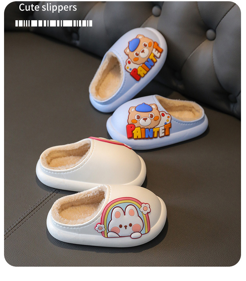 New Children's Cotton Slippers Toe Hole Shoes Cotton Cartoon Warm Outdoor Beach Waterproof Light Bottom Baby Slippers