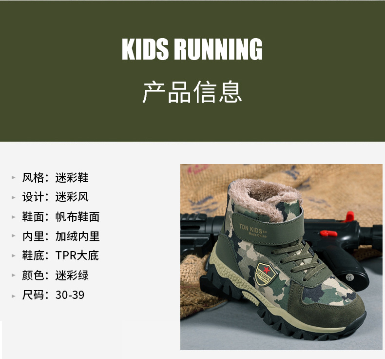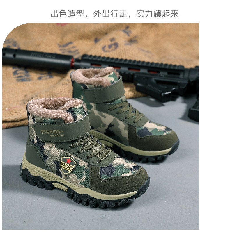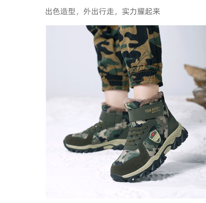 Autumn and Winter new children's outdoor mountaineering camouflage cotton shoes large and medium children fleece-lined warm outdoor sports camouflage children's shoes