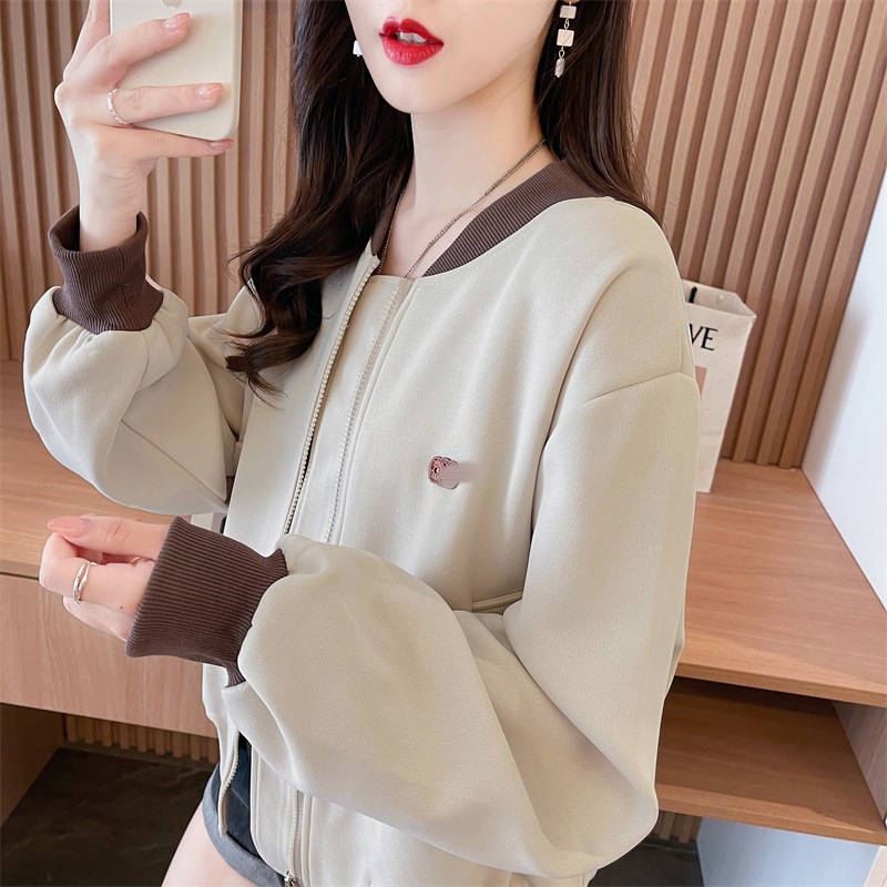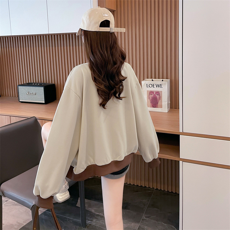 Early Autumn and Spring Korean Style Loose Sweater Women's Coat Loose All-match Fashion Casual Contrast Cardigan Zipper Lazy Style