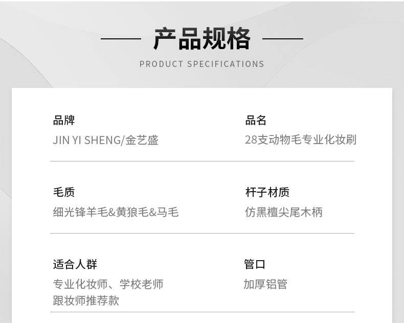 Jinyi brush 28 makeup brushes full set of animal fur soft fur portable makeup artist special makeup brush Cangzhou