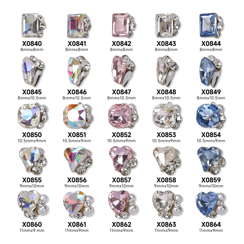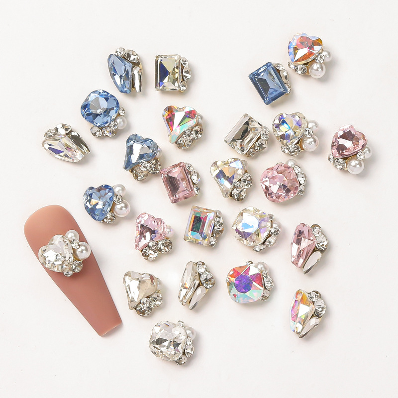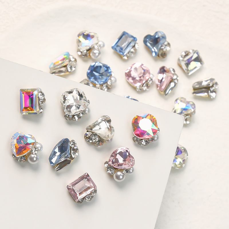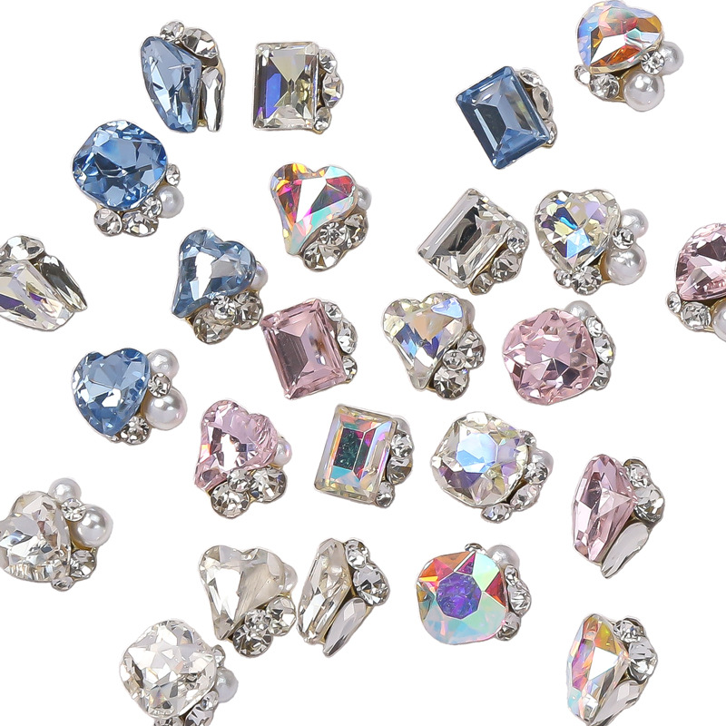 Popular online celebrity nail art Crystal pile Diamond finished product super shiny crooked heart rectangular right angle hand-inlaid Pearl nail decorations