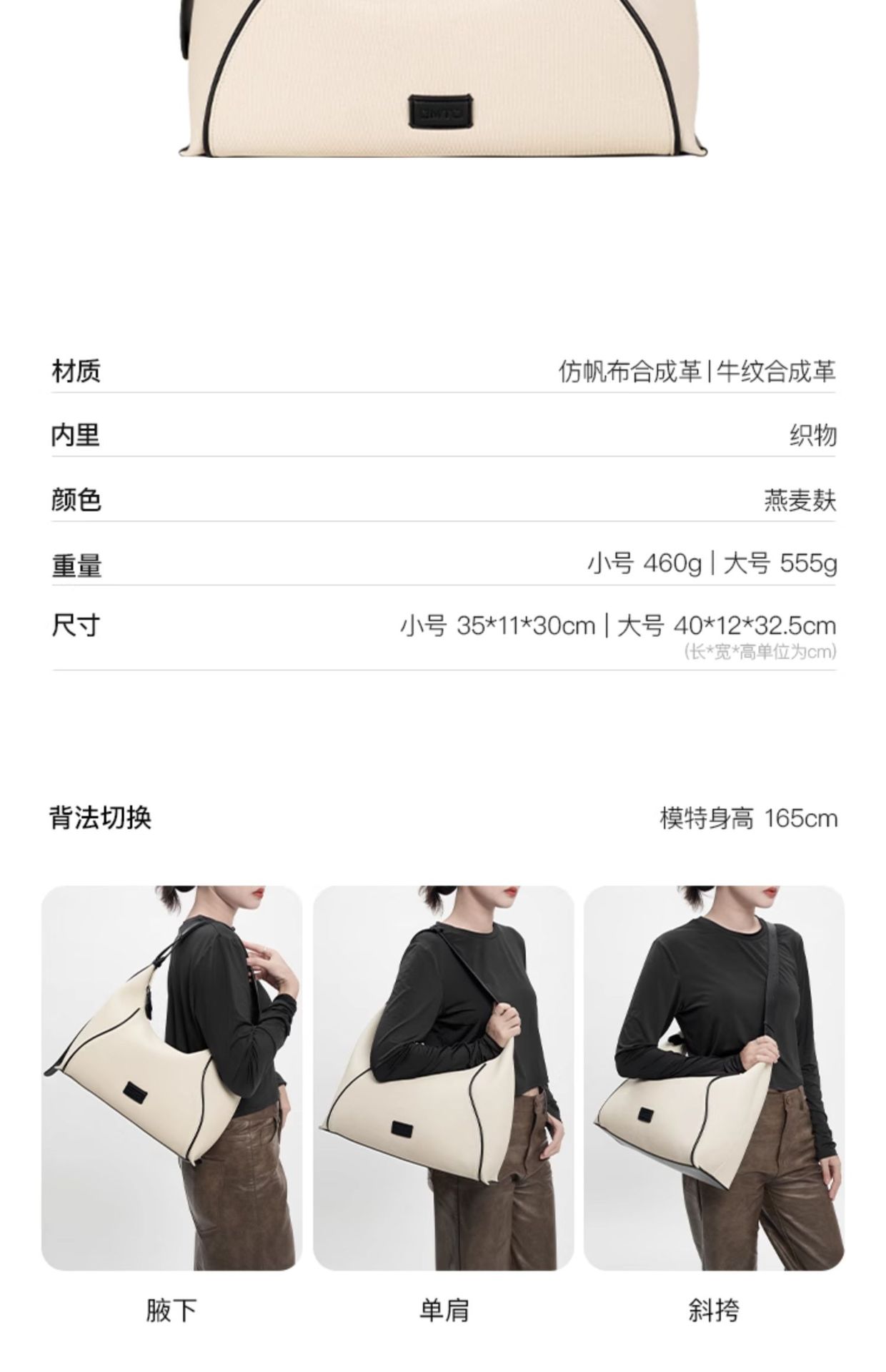 OMTO Oat Hobo Underarm Bag 2024 New Imitation Canvas Crossbody Bag Women's High-end Sense Large Capacity Bag Casual