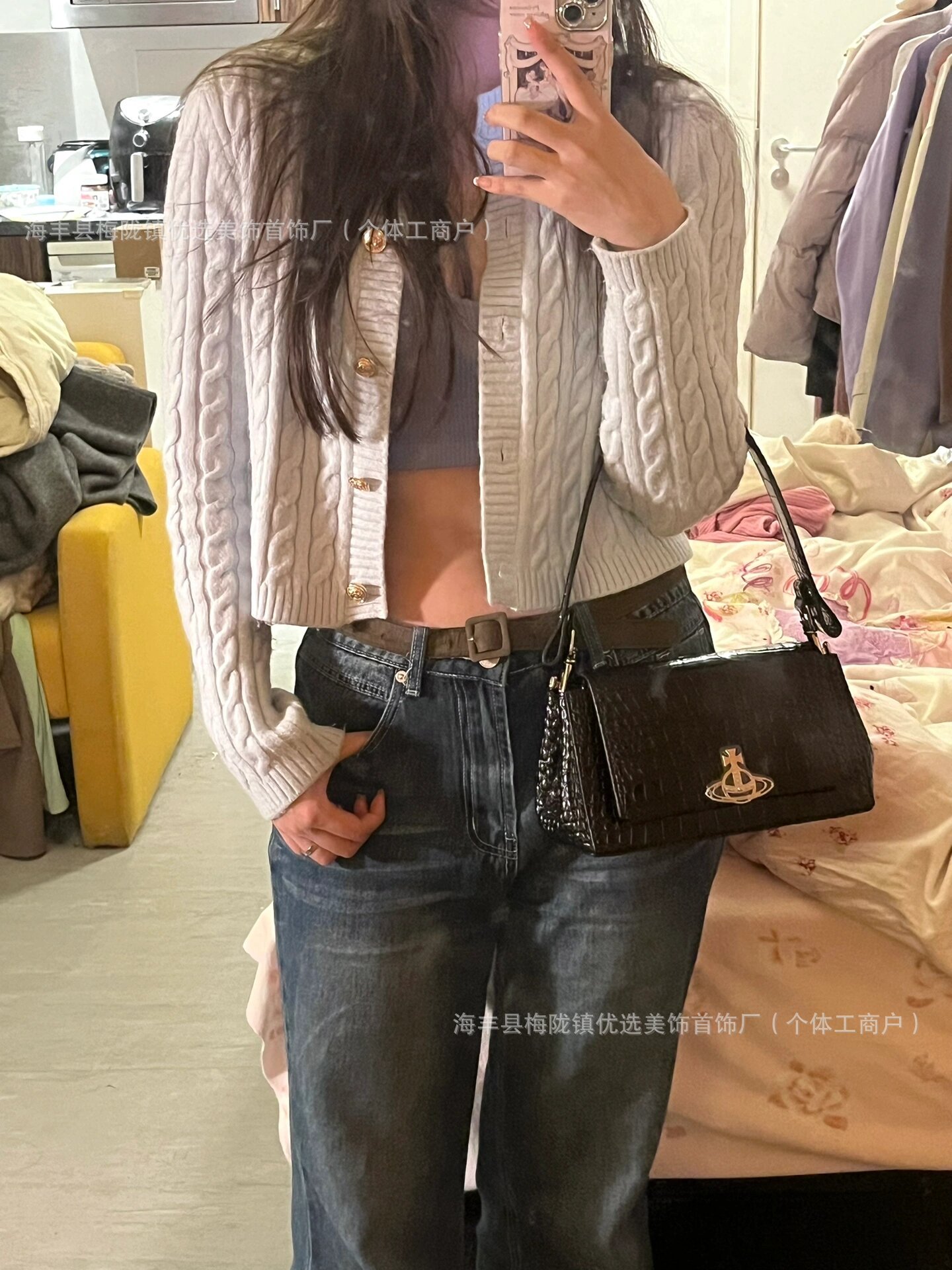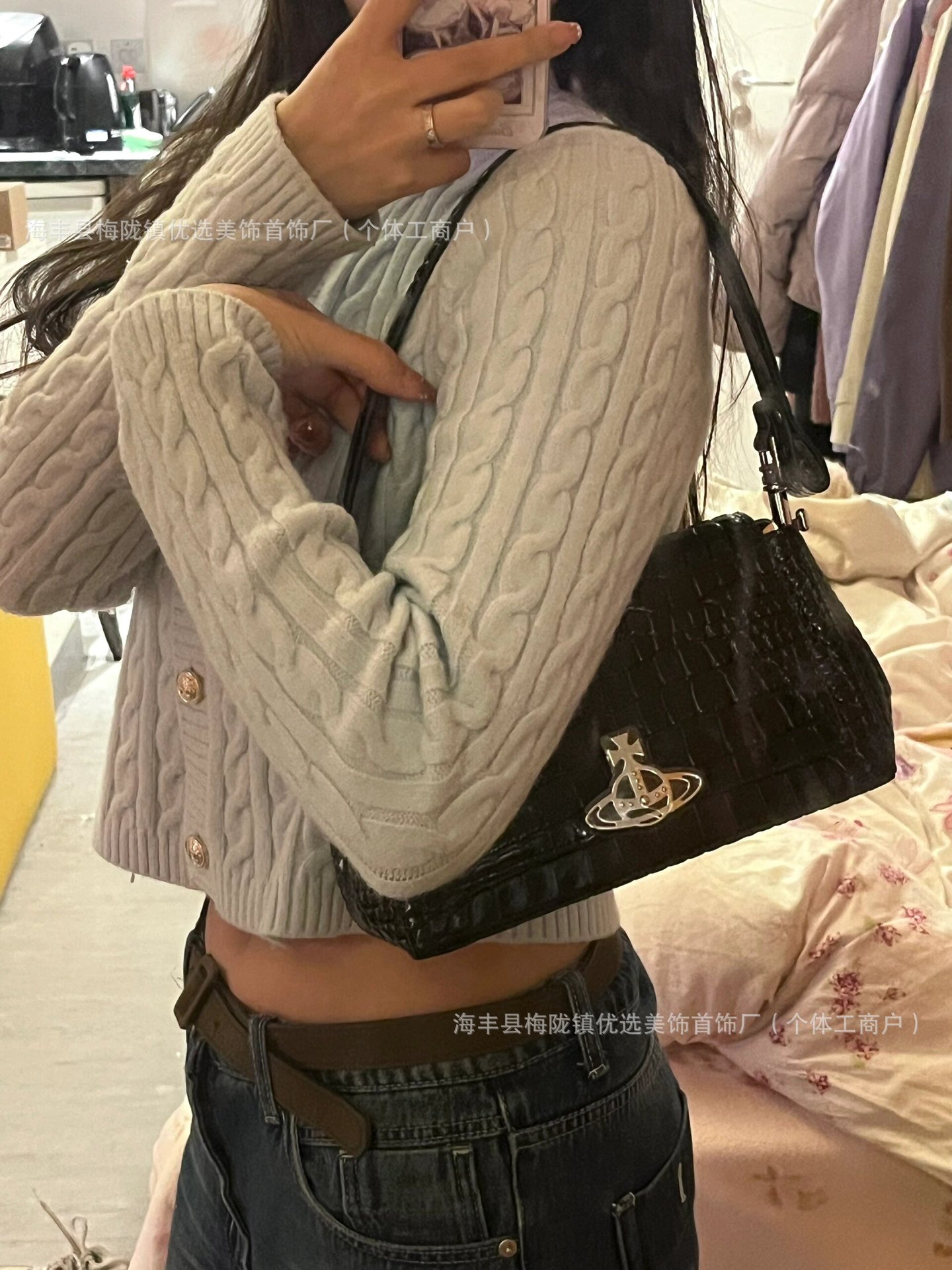 Empress Dowager's New Crocodile Underarm Bag High-end Embossed Cow Leather Crossbody High-grade Crossbody Chain Shoulder Bag